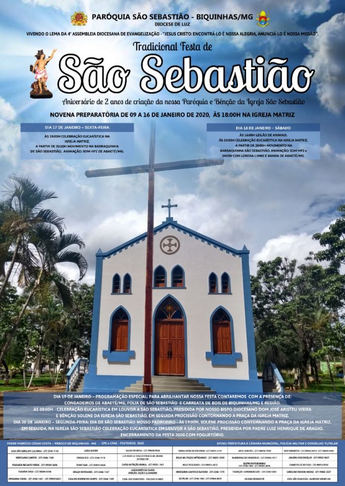 Paróquia de Biquinhas divulga II Festa de São Sebastião