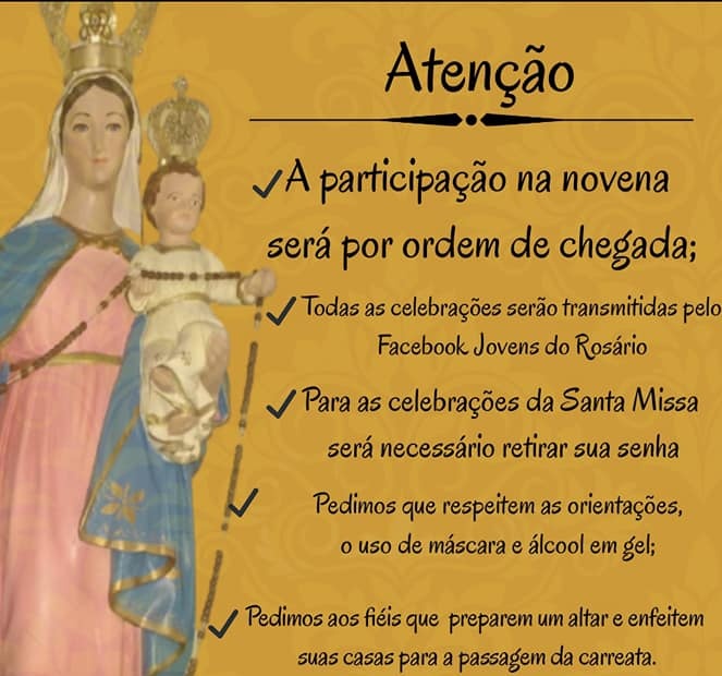 Todas as celebrações serão transmitidas pelo Facebook Jovens do Rosário.