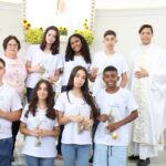 Na alegria do Cristo Ressuscitado, a Paróquia Nossa Senhora do Rosário, em Arcos, celebrou no Domingo de Páscoa, 20 de abril, às 09h, na Igreja Matriz Nossa Senhora do Rosário, a Primeira Eucaristia de dezenas de crianças e adolescentes.