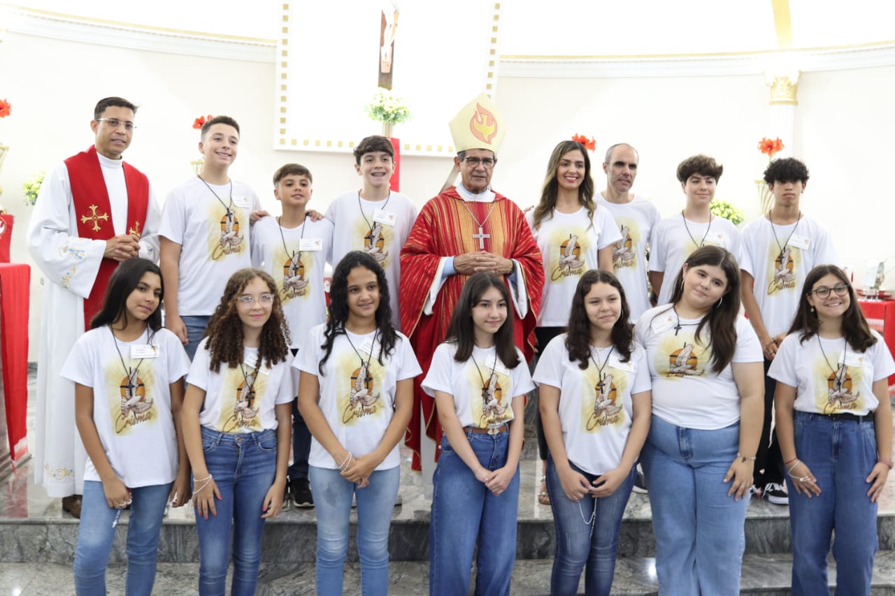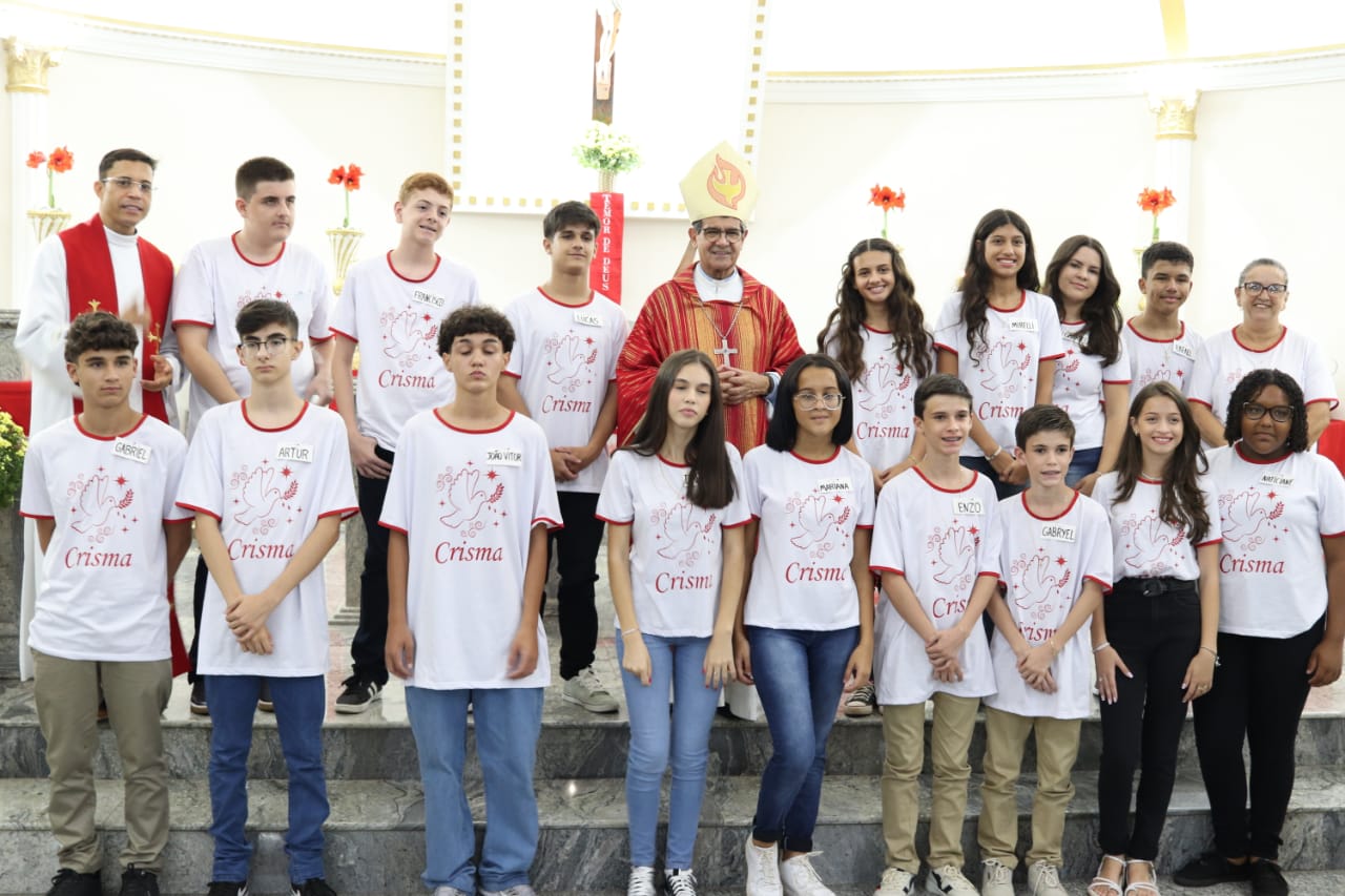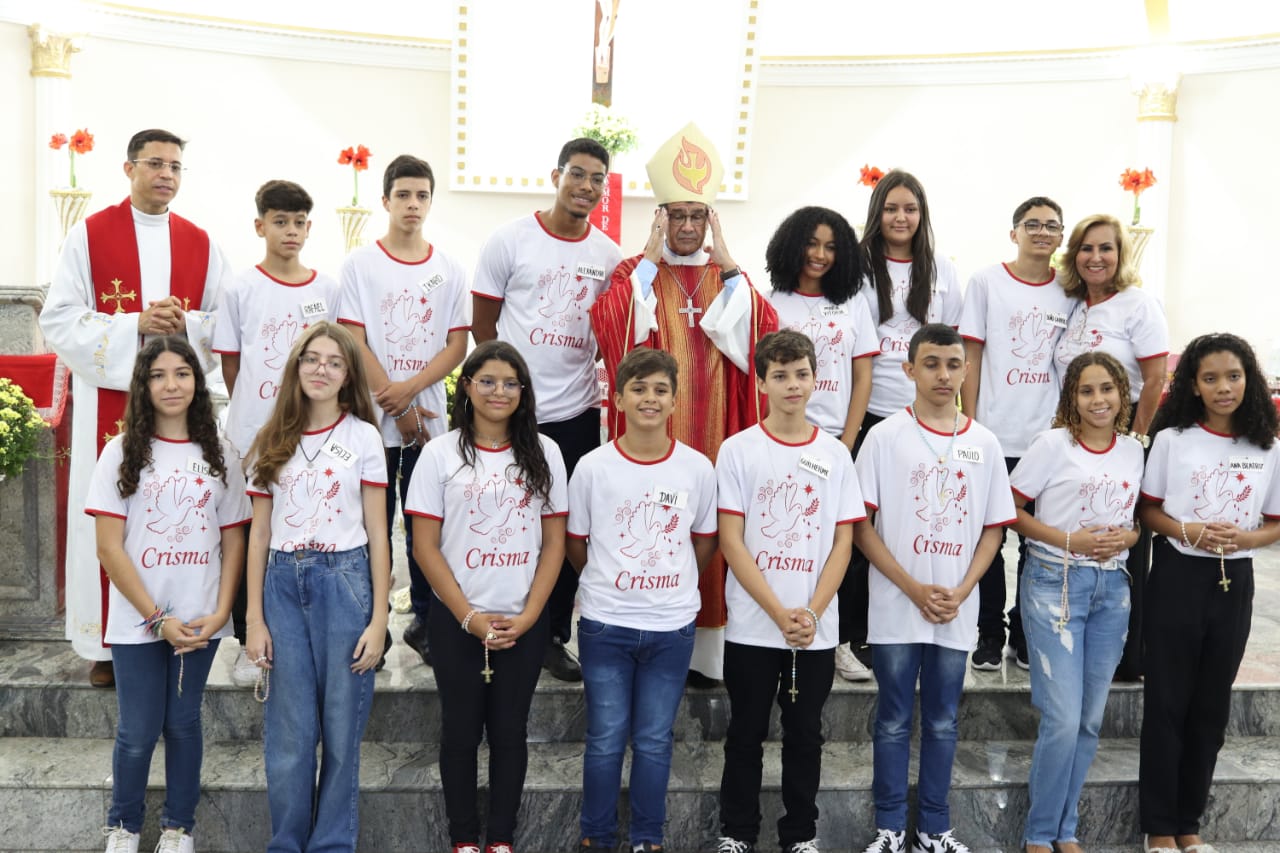 Os 43 crismandos que receberam o Sacramento da Confirmação fizeram a devida preparação Catequética com os catequistas: Thiago, Roberta, Dagmar Moreira, Cleusa Teixeira e Vânia Longobardi.