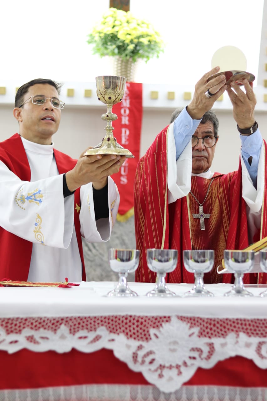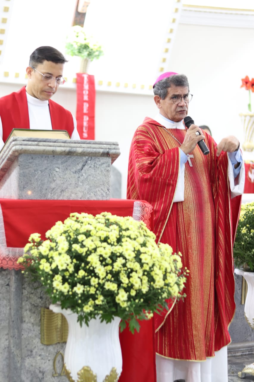 A festiva celebração, realizada às 19h, na Igreja Matriz Nossa Senhora do Rosário, foi presidida pelo bispo diocesano, Dom José Aristeu e concelebrada pelo pároco, padre Keroll Reis de Paula.