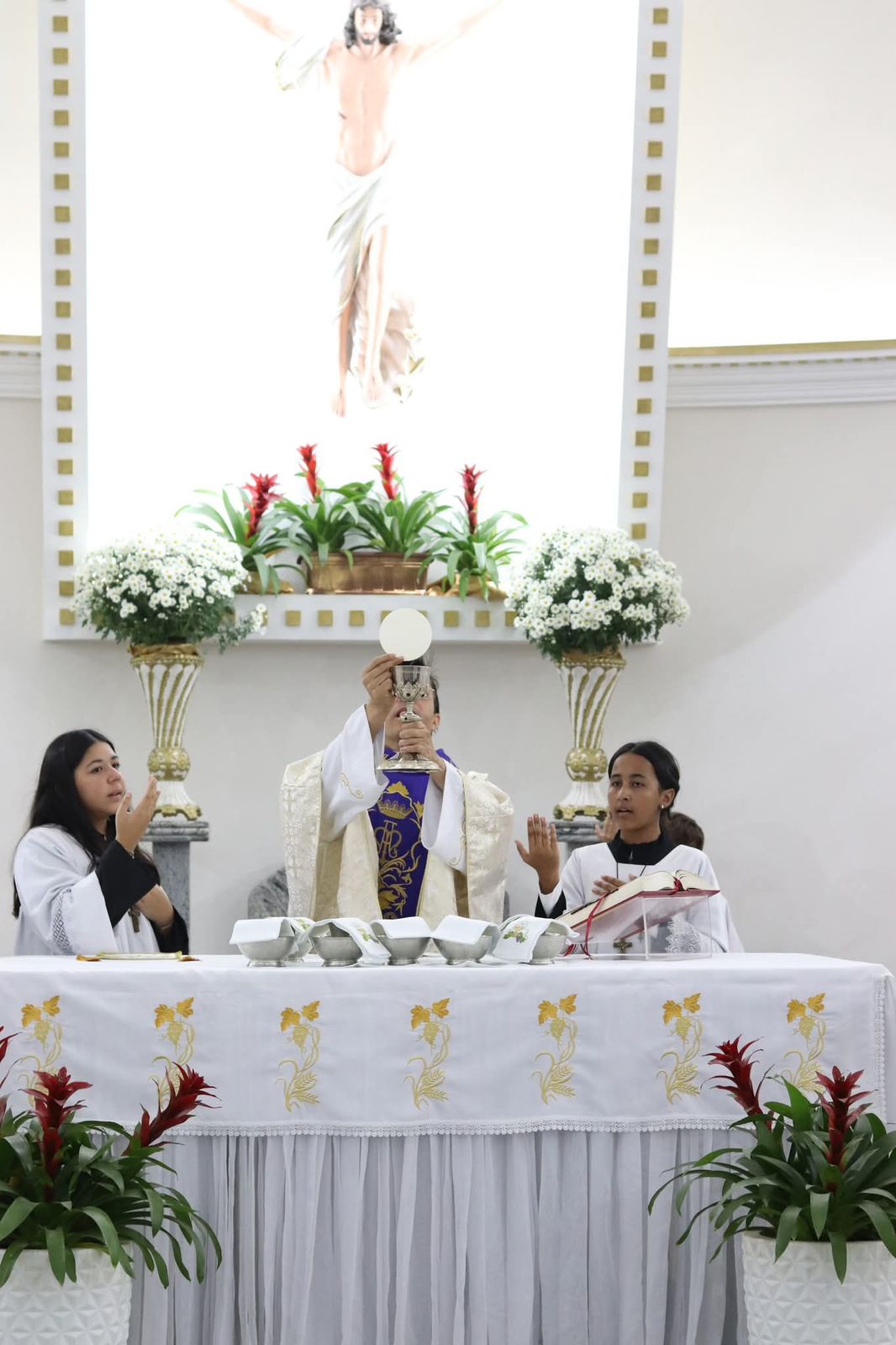 Na homilia, o pároco fez memória da paróquia desde 2010, data da criação, até o atual momento. Padre Keroll homenageou e agradeceu, relembrou o trabalho realizado de cada pároco, mencionando seus antecessores, padres Almerindo e Agnaldo.