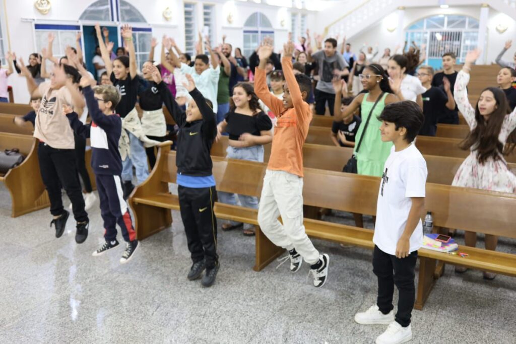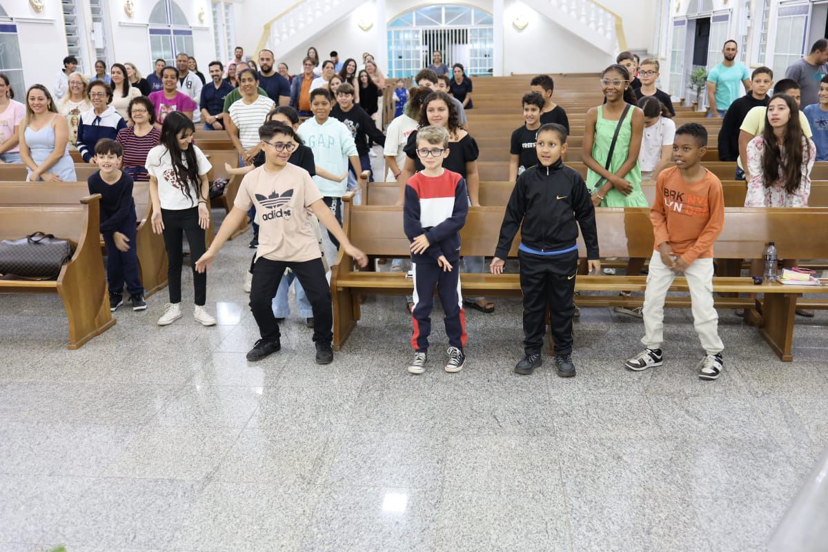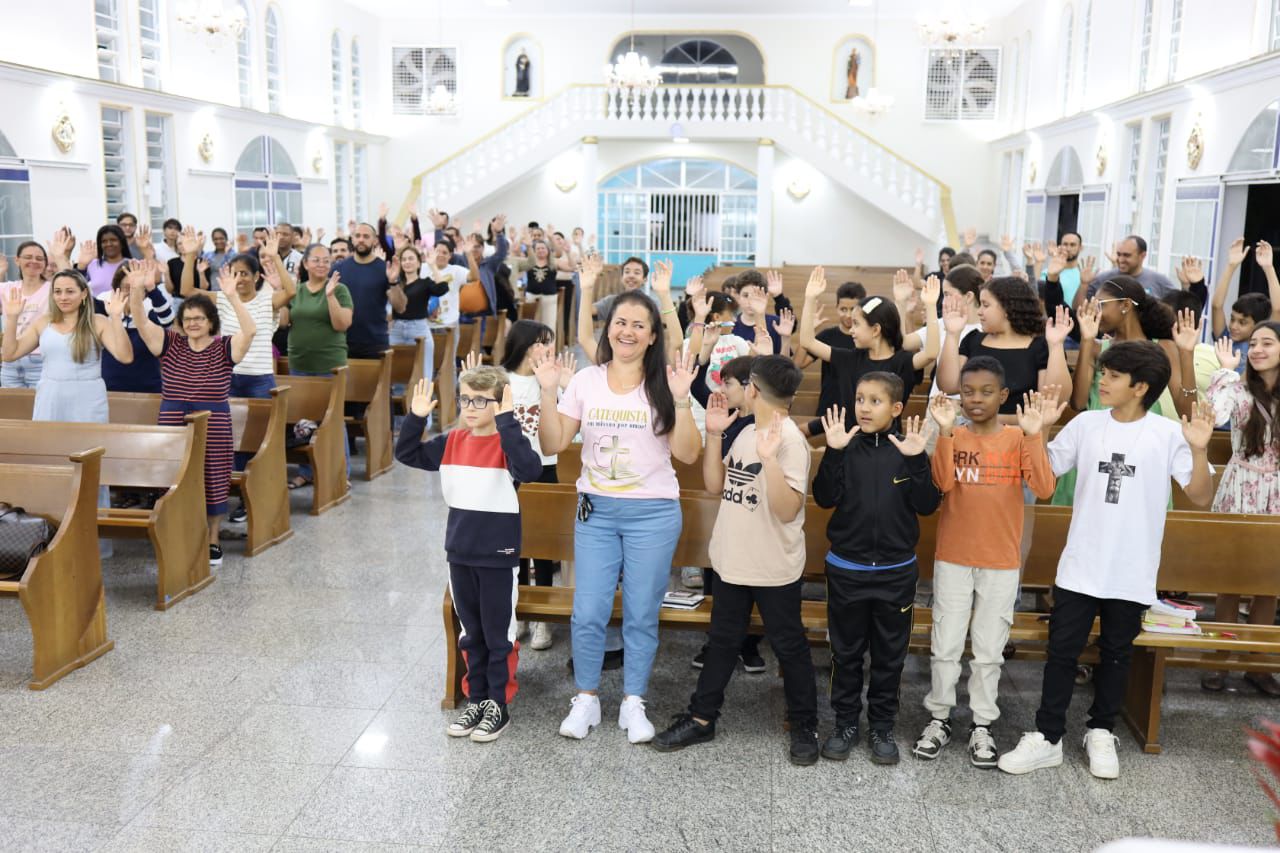Catequizandos, famílias e catequistas da Paróquia Nossa Senhora do Rosário, em Arcos, se reuniram no dia primeiro de agosto, às 19h, na Igreja Matriz, para um Encontro Vocacional Sacerdotal e Familiar.