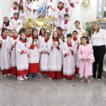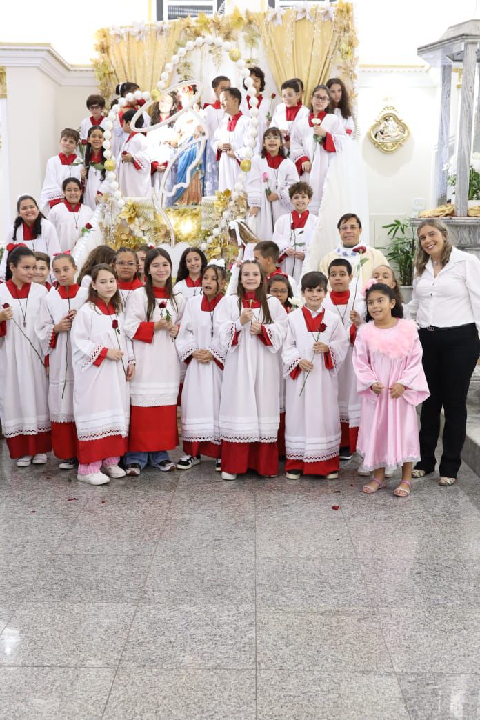 Ao final da celebração com os coroinhas, eles prestaram homenagem a Nossa Senhora com uma bela e emocionante Coroação.