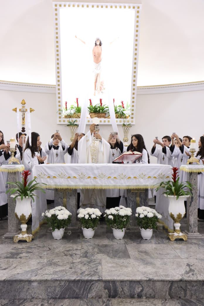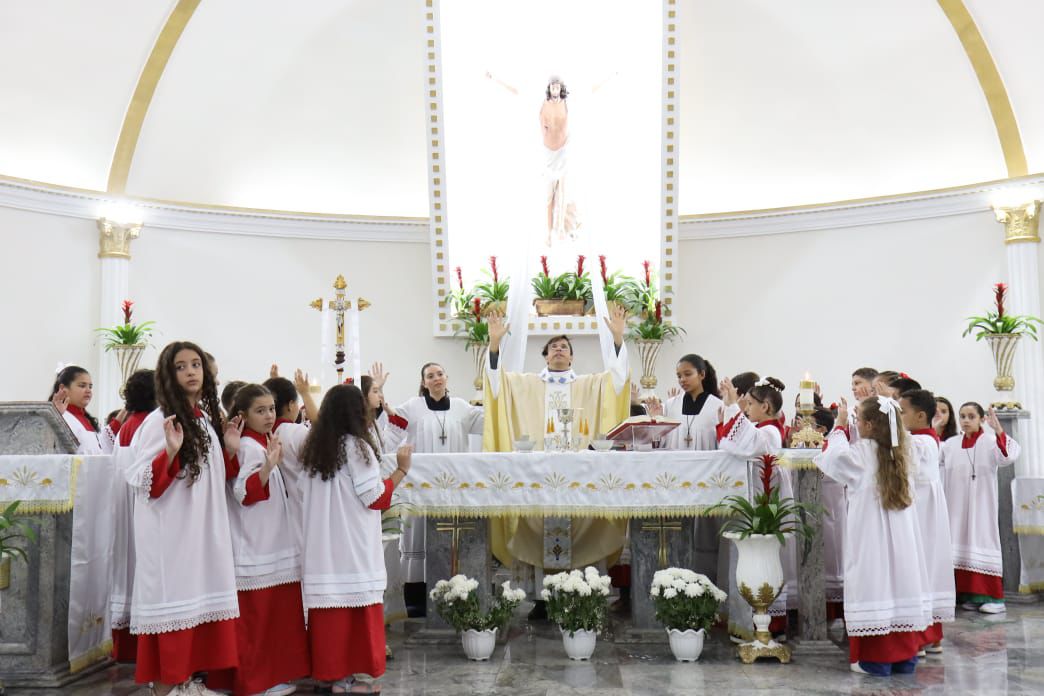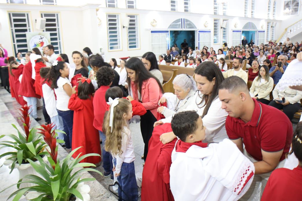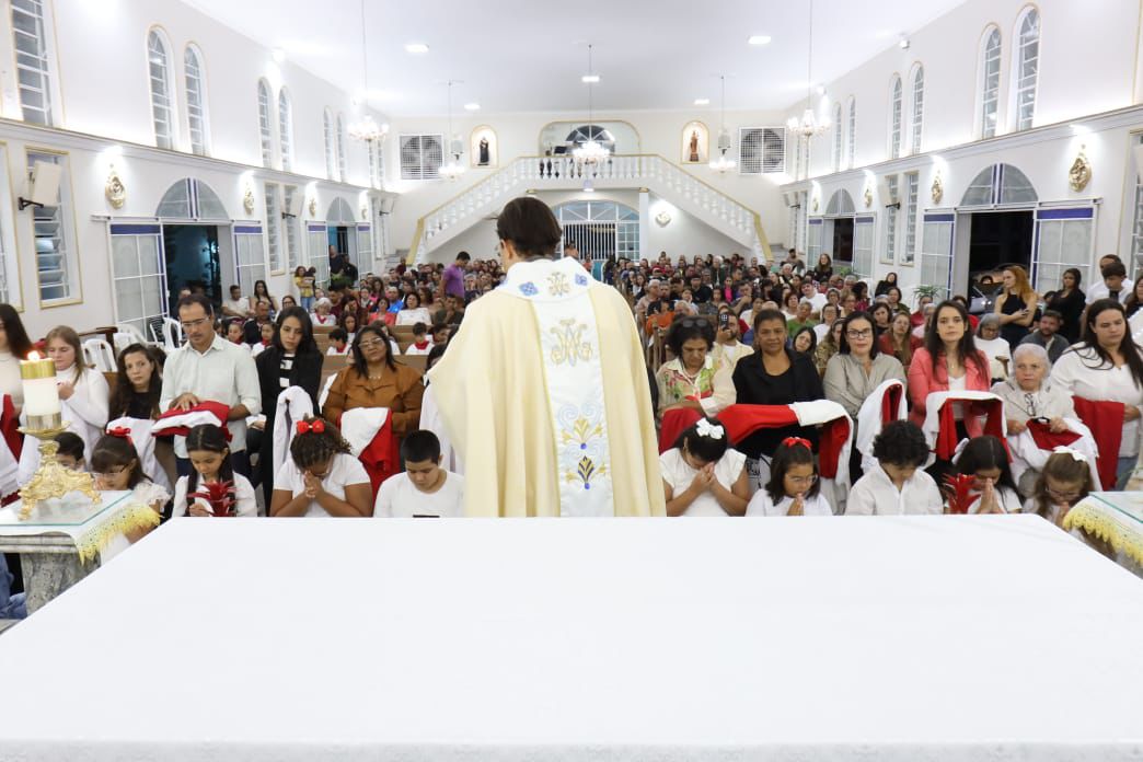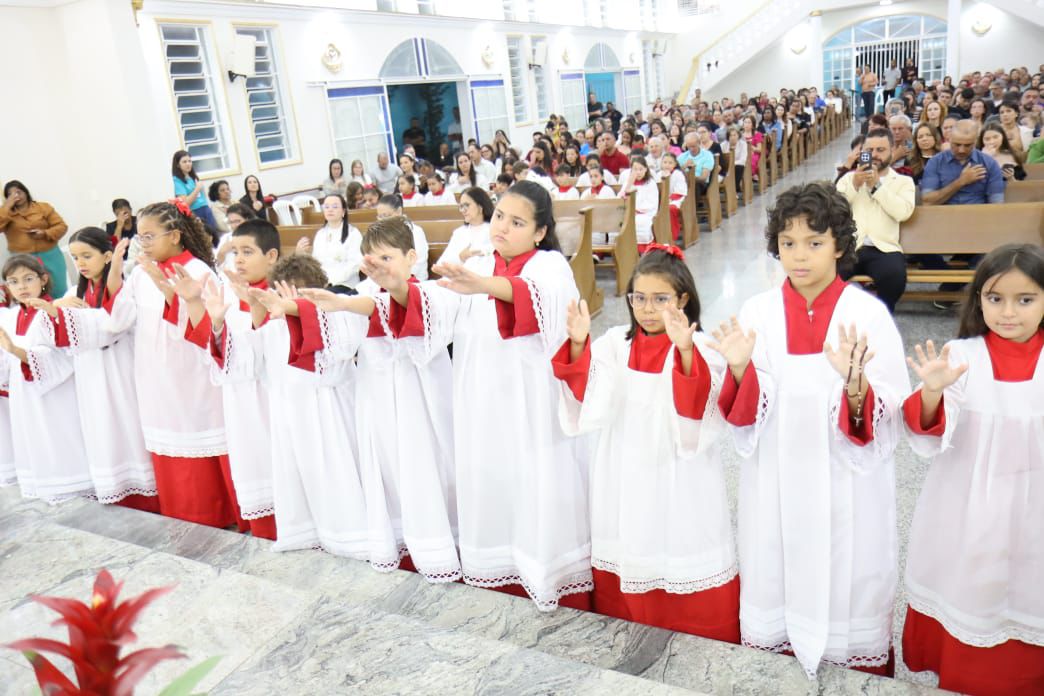 As celebrações presididas pelo pároco, padre Keroll Reis de Paula, marcaram o início de uma bonita vida litúrgica das crianças e adolescentes.