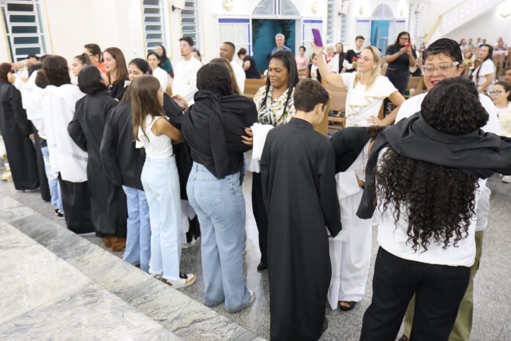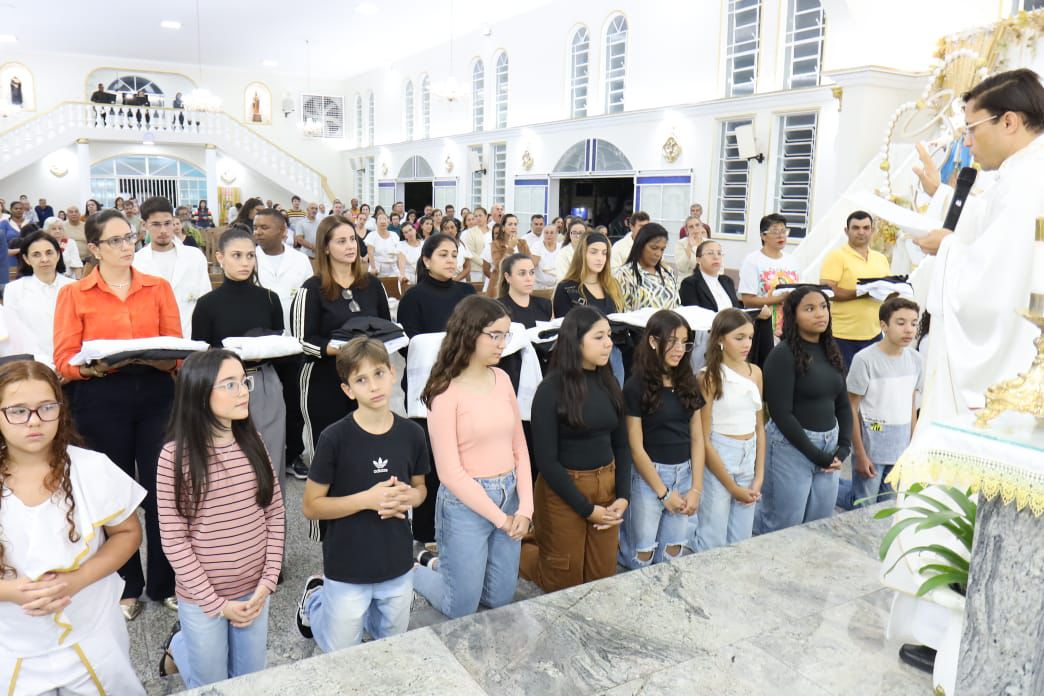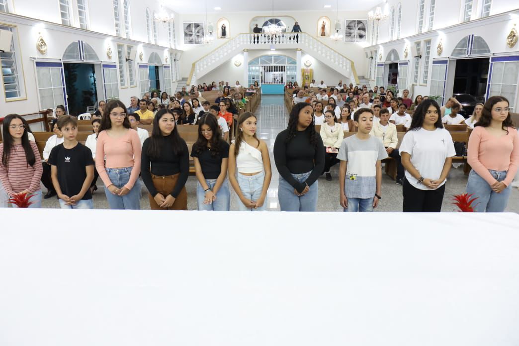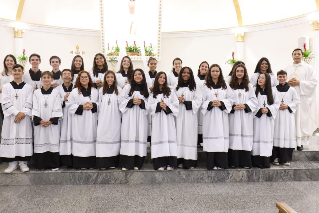 Após uma intensa e frutuosa formação, feita pelas coordenadoras Leila Cardoso e Carol Moraes, as crianças e adolescentes assumiram o compromisso de servir com amor e dedicação no Altar do Senhor.