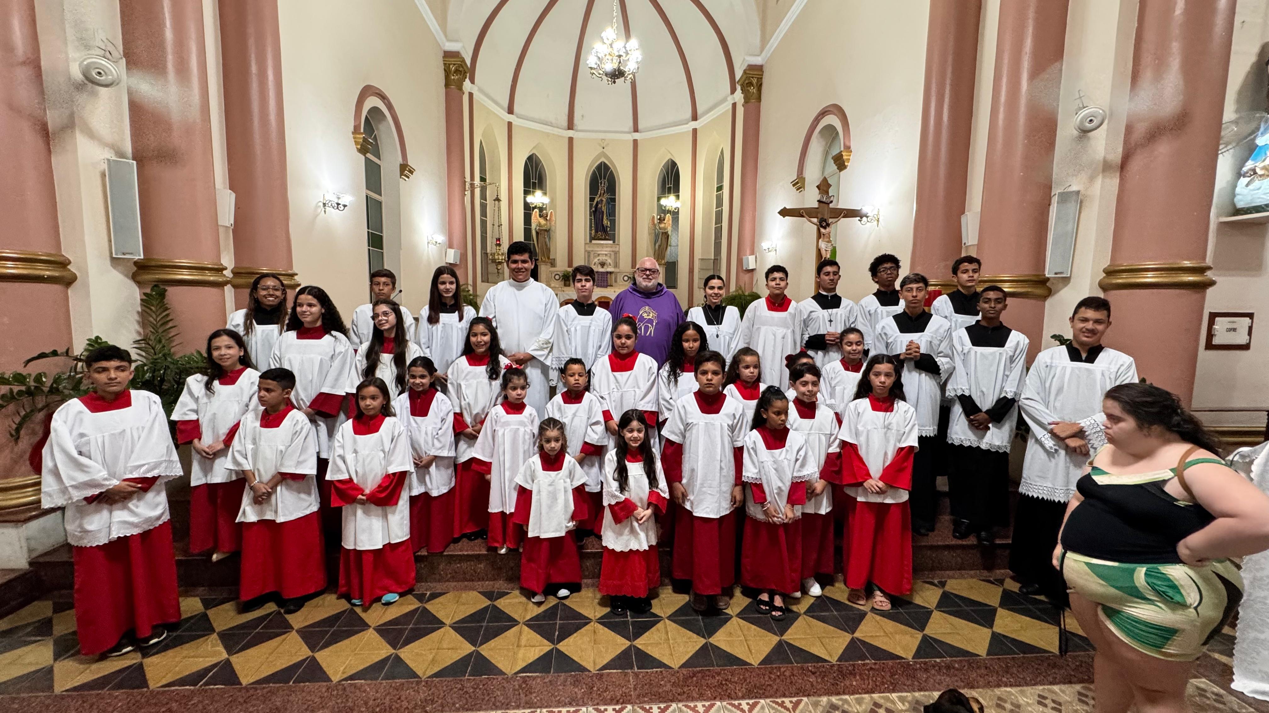 Os coroinhas que iniciam sua caminhada de serviço na paróquia são: Clarice, Alice Braga, Alice de Fátima, Clara, Miguel, Valentina, Antony, Emanuelle, Cecília, Letícia, Mikaelly, Isabella e Lavínia. Vestidos de branco, simbolizando pureza e dedicação, eles emocionaram a assembleia ao demonstrarem alegria e fervor durante o rito de investidura. “Servir no altar é uma grande honra e também uma oportunidade de crescer na fé”, comentou um dos pais presentes.