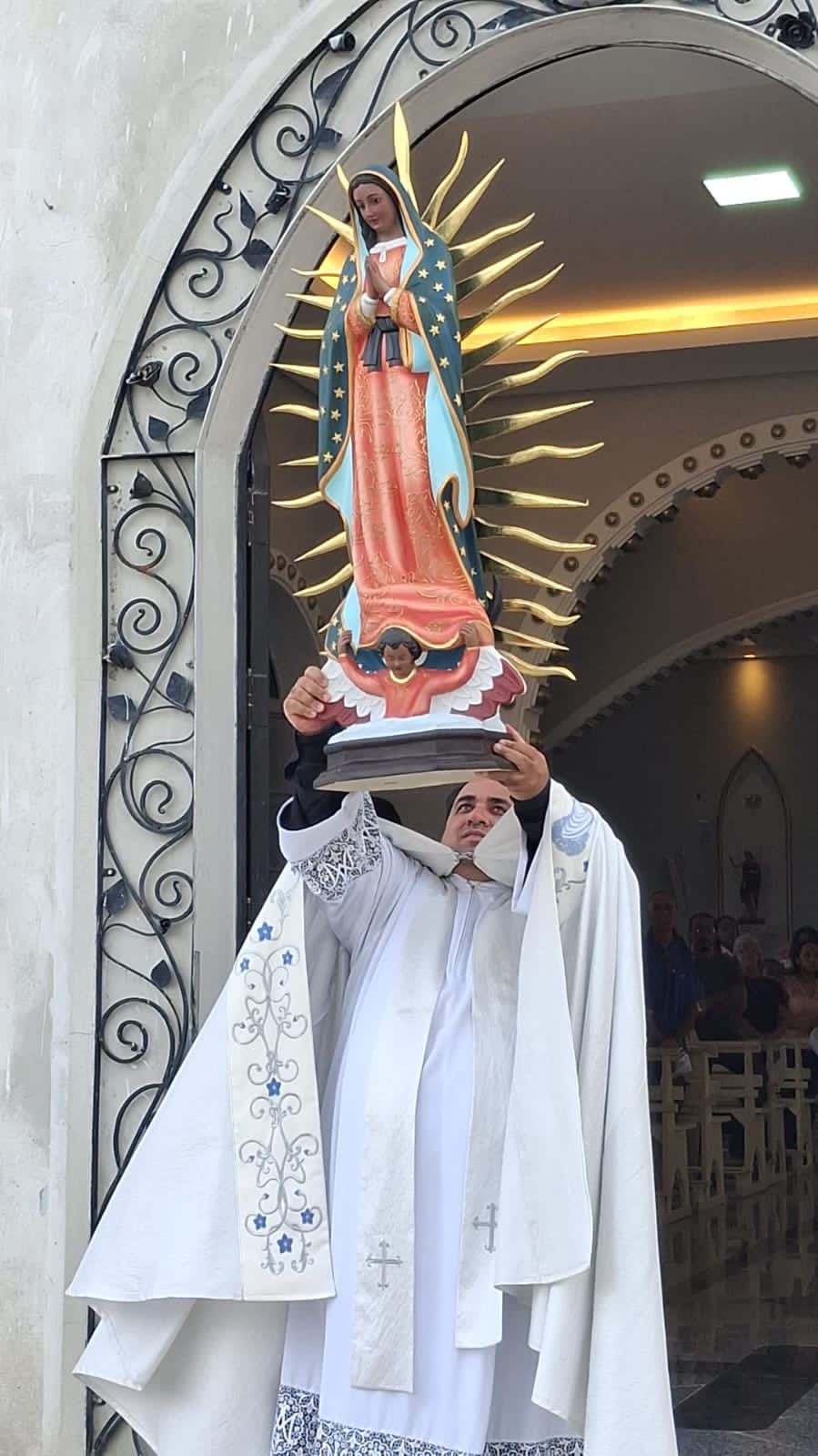 Após a carreata e entronização da imagem vinda do México, iniciou a Santa Missa, às 17h, com a presença de centenas de fiéis leigos, que representavam todas as forças vivas da Paróquia.