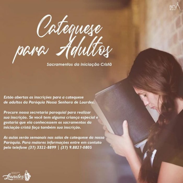 Estão abertas as inscrições para a Catequese de Adultos da Paróquia Nossa Senhora de Lourdes, em Formiga.