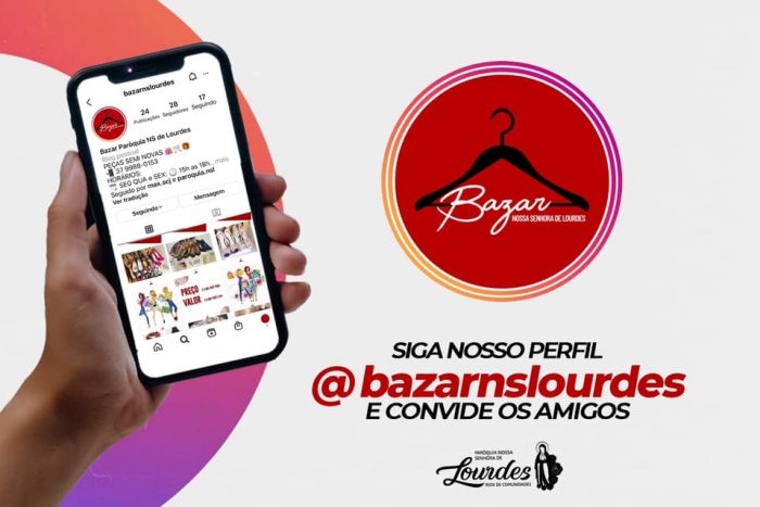 Confira e siga as redes sociais da paróquia: Instagram do BAZAR @bazarnslourdes e também @paroquia.nsl.