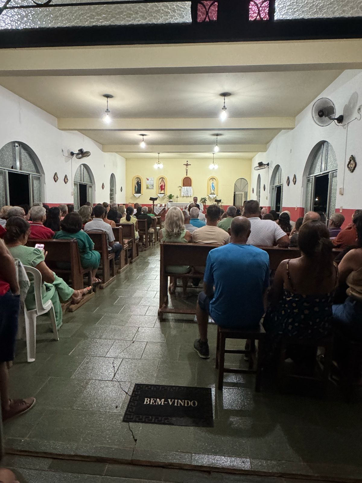 Ao final da missa, Padre Ivanildo conduziu uma oração especial junto à Cruz, localizada ao lado de fora da igreja, reforçando o momento de devoção e bênção.