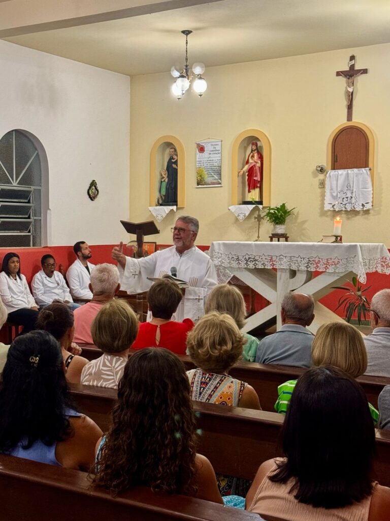 Ele também fez questão de agradecer a todos que contribuíram para a realização da missa, desde os que ajudaram na limpeza da igreja e de seu entorno, até aqueles que serviram na liturgia. Com gratidão, reconheceu o empenho da equipe de canto, dos ministros e de todos os envolvidos na organização da celebração.