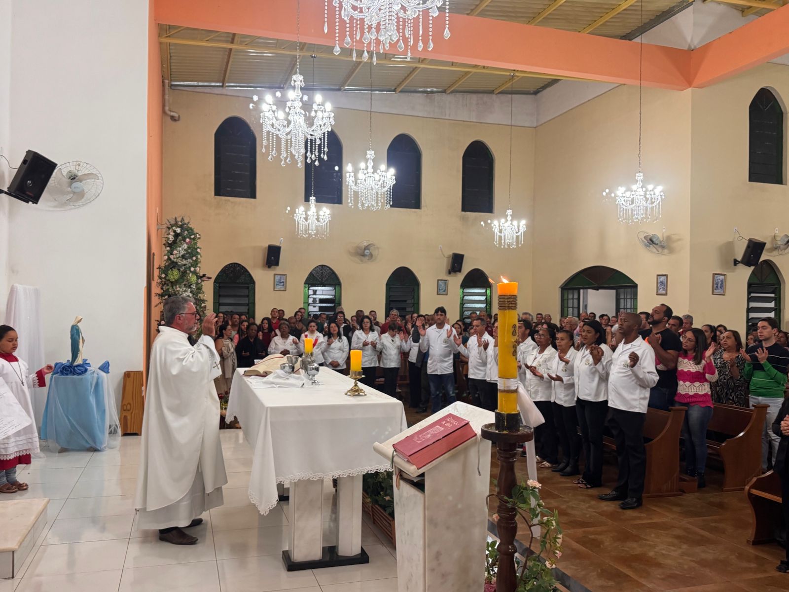 Após a missa da noite, os fiéis participaram com alegria do momento de confraternização nas barraquinhas, onde puderam saborear comidas típicas e celebrar o encerramento da festa em clima fraterno e acolhedor. A animação musical ficou por conta de Sandra Castro e Renato Gonçalves, que ajudaram a tornar a noite ainda mais especial.