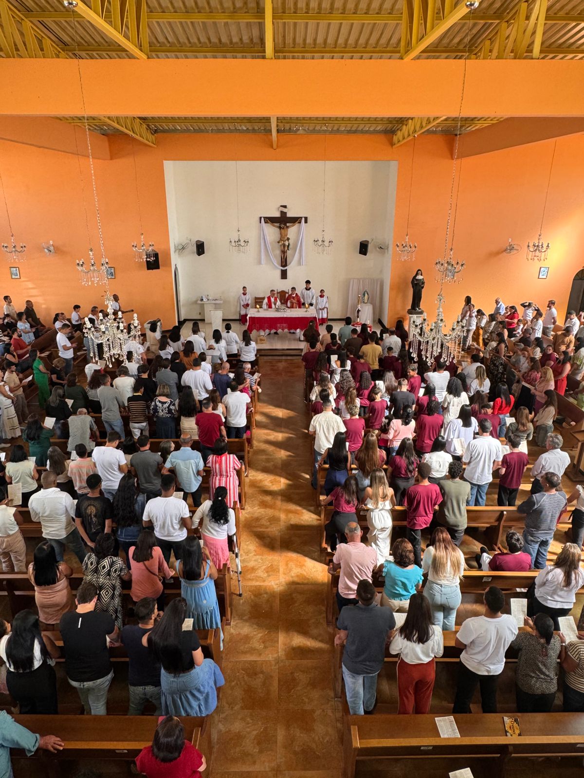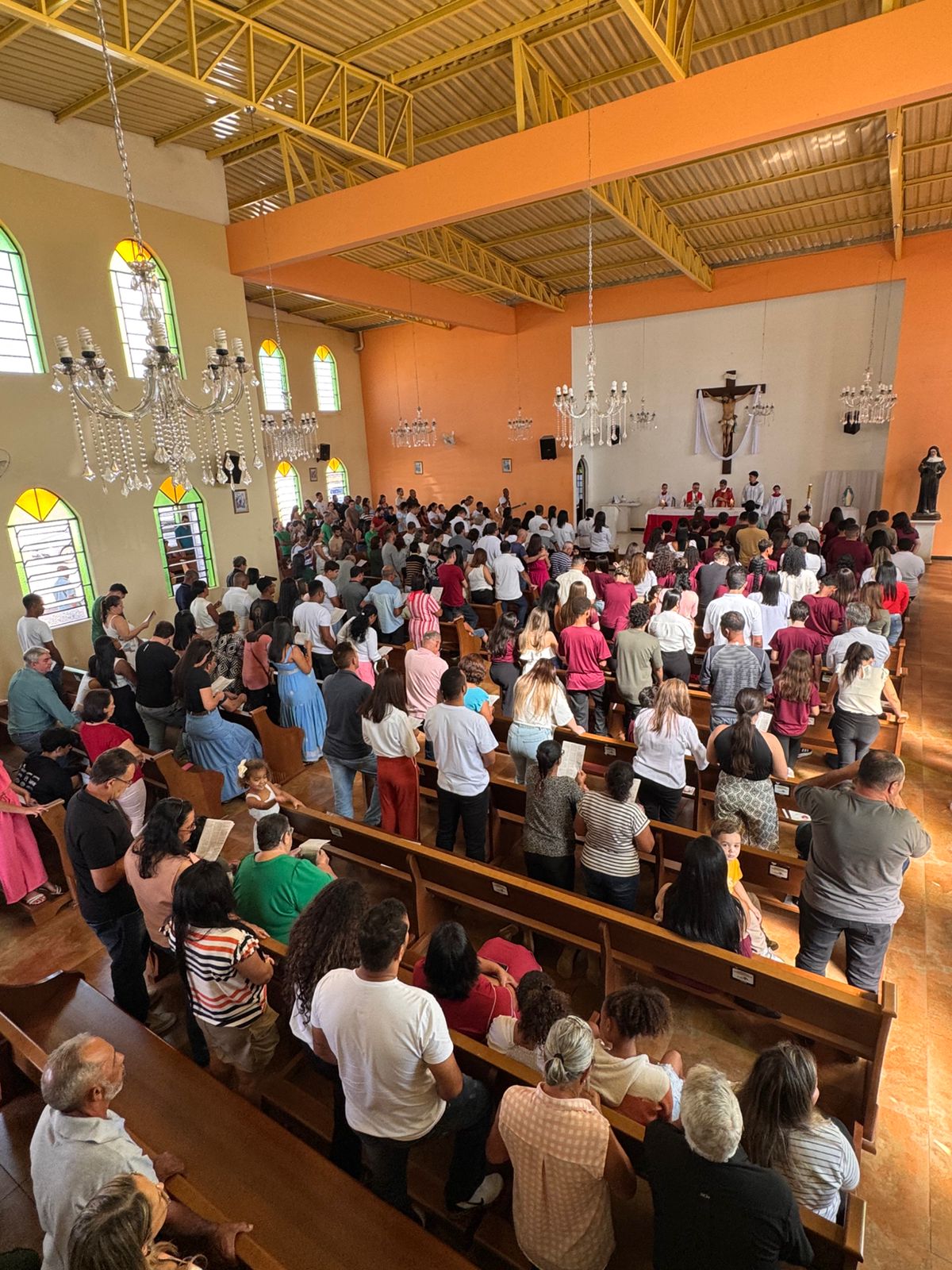 A Igreja Matriz Santa Rita esteve repleta de familiares, amigos e fiéis que se uniram em oração e gratidão por esse passo tão importante na caminhada cristã dos crismandos.