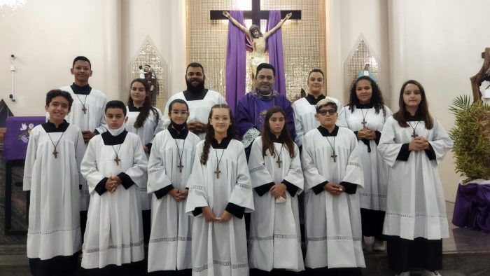 Os jovens acólitos são preparados e exercem a função de auxiliar o sacerdote no serviço do altar.