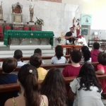 Logo após a palestra, os pais e filhos juntos ouviram sobre a importância da Eucaristia e os sacrifícios, ministrada pelo pároco padre Cristiano Leal.