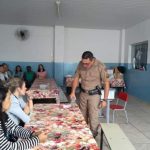 Os pais também tiveram um momento de reflexão, após, deixarem os filhos na Igreja Matriz, eles se dirigiram para a Escola Municipal Dr. Jacinto Campos, onde participaram de uma palestra com o Sargento Washington.