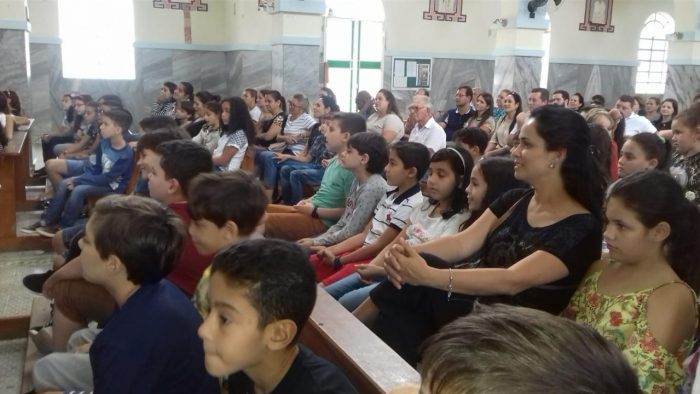 Logo após a palestra, os pais e filhos juntos ouviram sobre a importância da Eucaristia e os sacrifícios, ministrada pelo pároco padre Cristiano Leal.