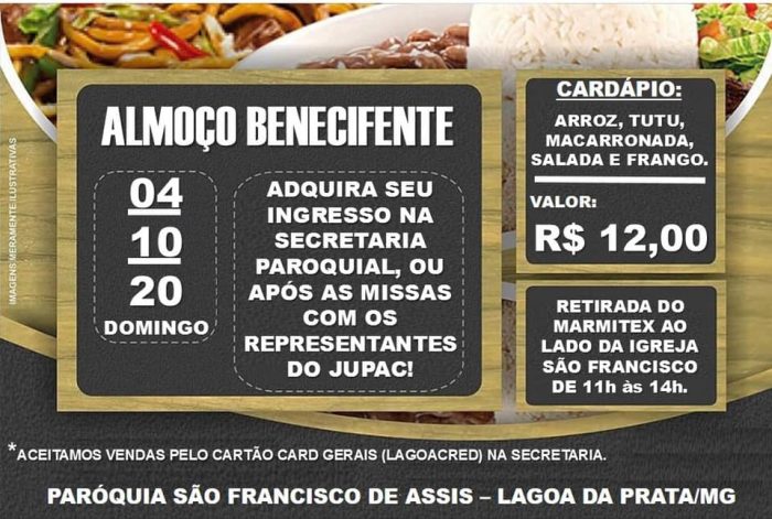 A Paróquia São Francisco de Assis, de Lagoa da Prata, promoverá no domingo, 04 de outubro – Dia de São Francisco, um almoço beneficente.