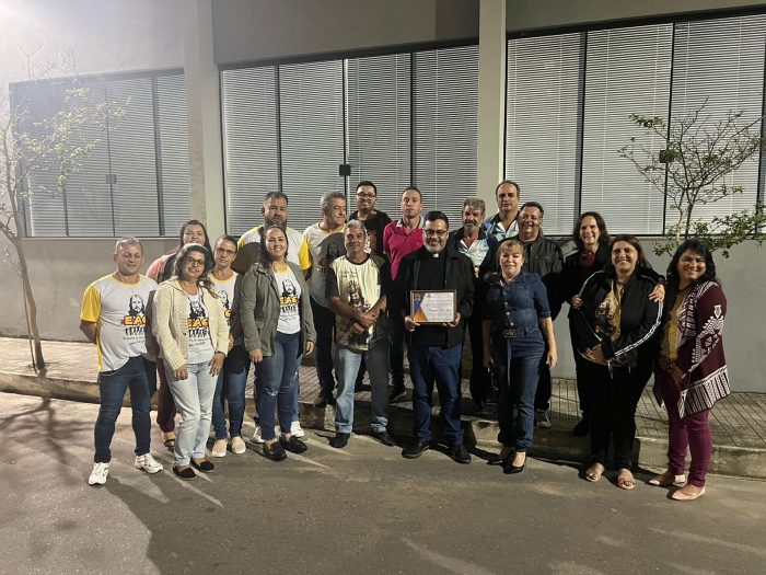 Diversos fiéis acompanharam o pároco, padre Paulo César, na entrega da honraria e agradeceram ao Poder Legislativo de Samonte pelo reconhecimento.