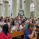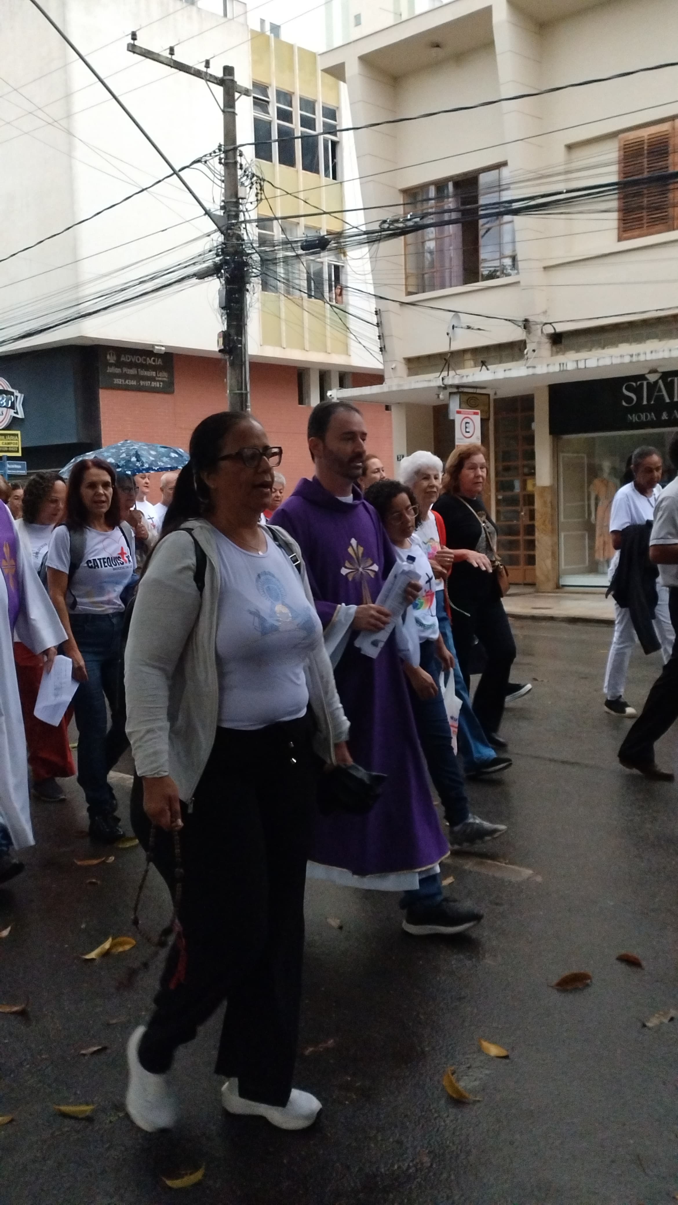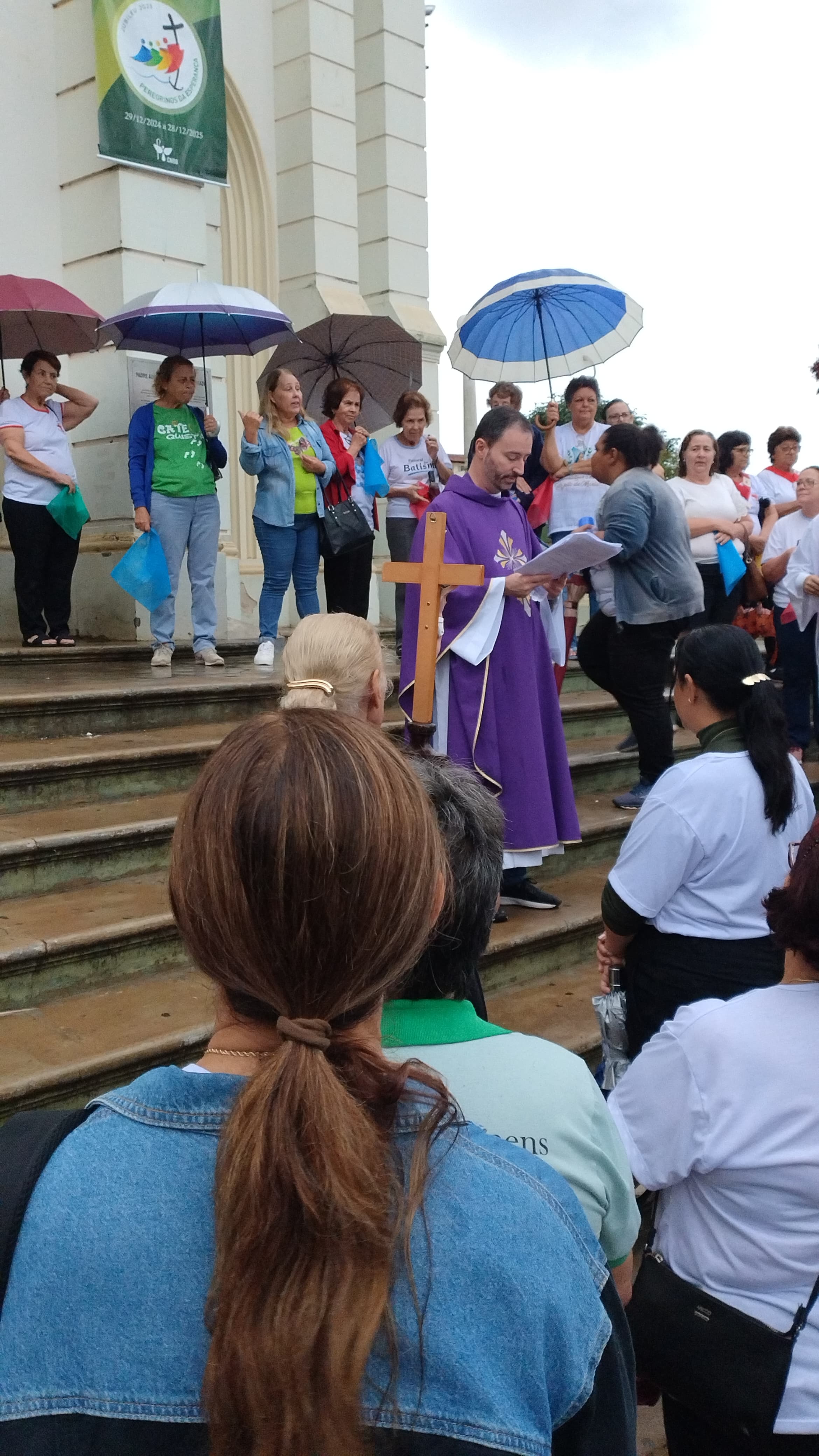 Após a proclamação da Palavra e uma profunda reflexão sobre a importância do Ano Jubilar, da necessidade de esperançar e de se apropriar das indulgências oferecidas, o povo de Deus seguiu penitente, caminhando, rezando e cantando até a Igreja Matriz Nossa Senhora do Bom Despacho. Ali, em procissão, todos adentraram na Igreja Jubilar e participaram da Celebração Eucarística das 7h da manhã.