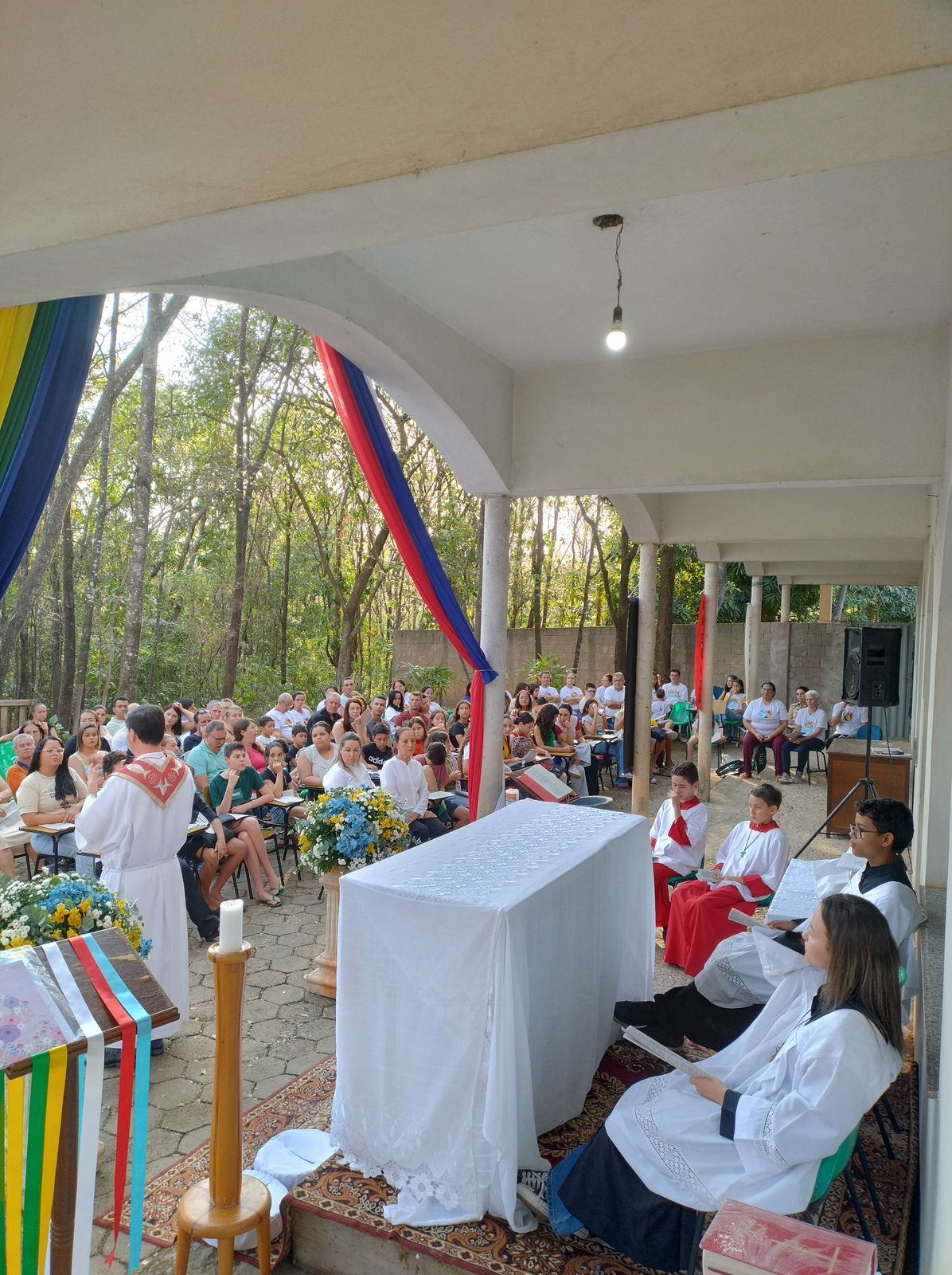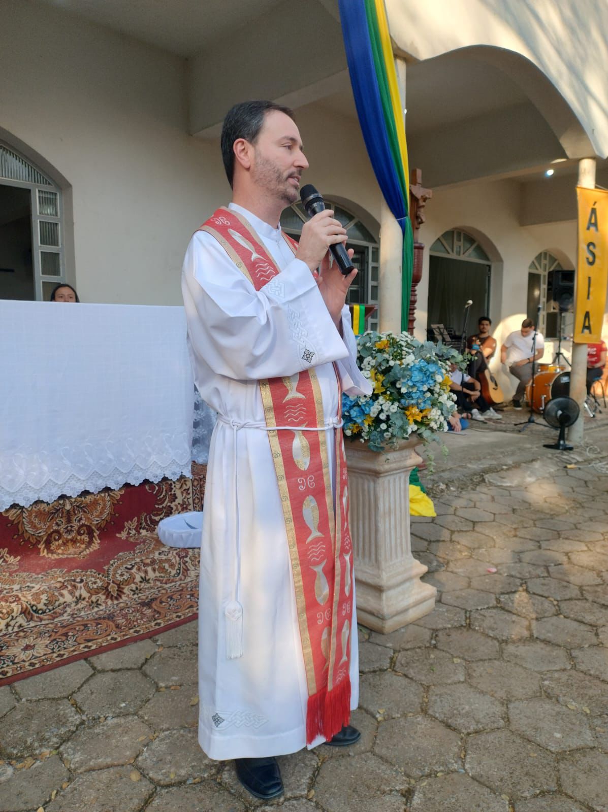 Durante a homilia, Padre Marcos Tiago salientou a importância da Infância e Adolescência Missionária e agradeceu calorosamente à coordenação.