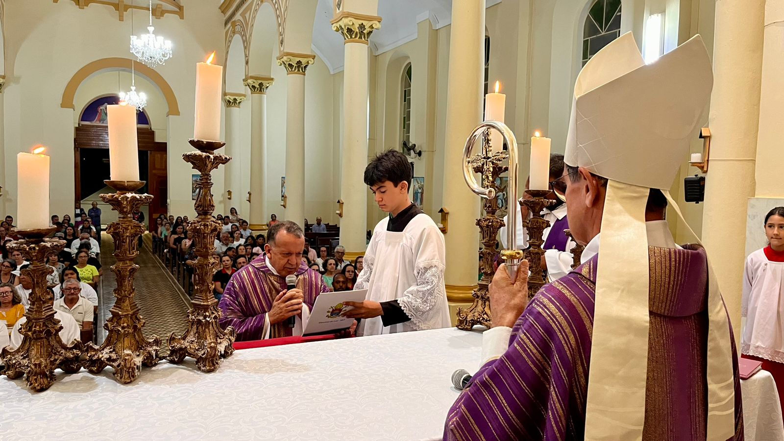 A celebração de acolhida e apresentação do novo vigário foi realizada na Igreja Matriz São Roque, sob a presidência do bispo diocesano, Dom José Aristeu Vieira.