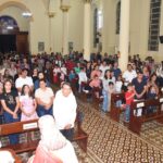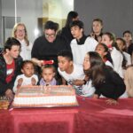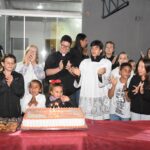Após a celebração, as comemorações continuaram, com um momento de confraternização, cantando parabéns e partilhando o bolo de aniversário com os presentes.
