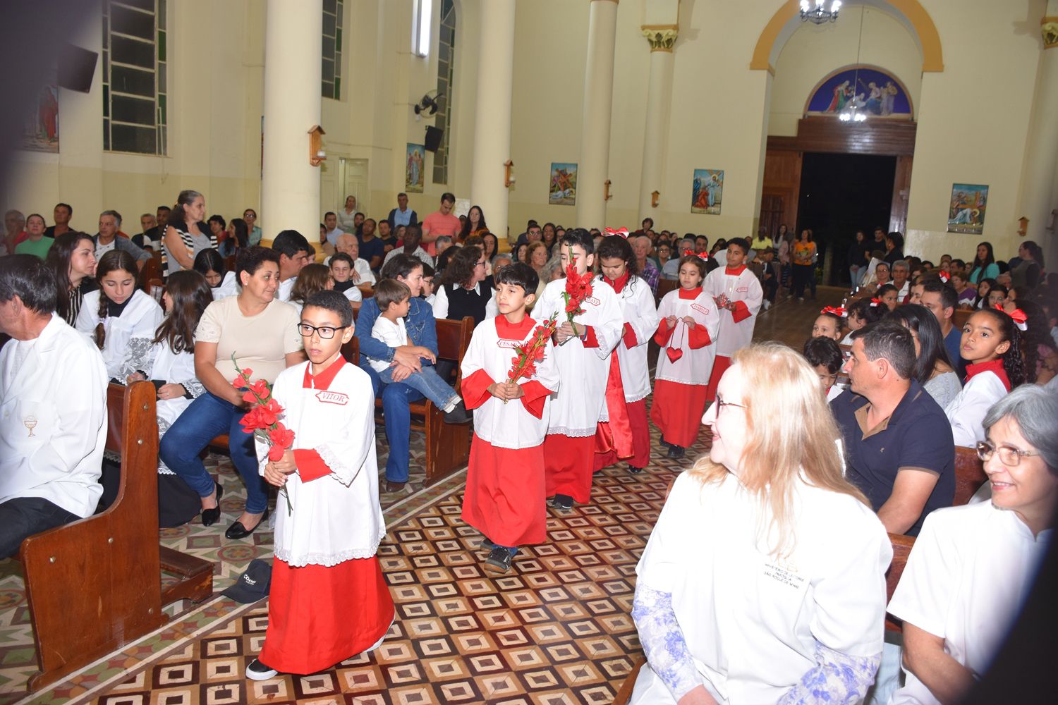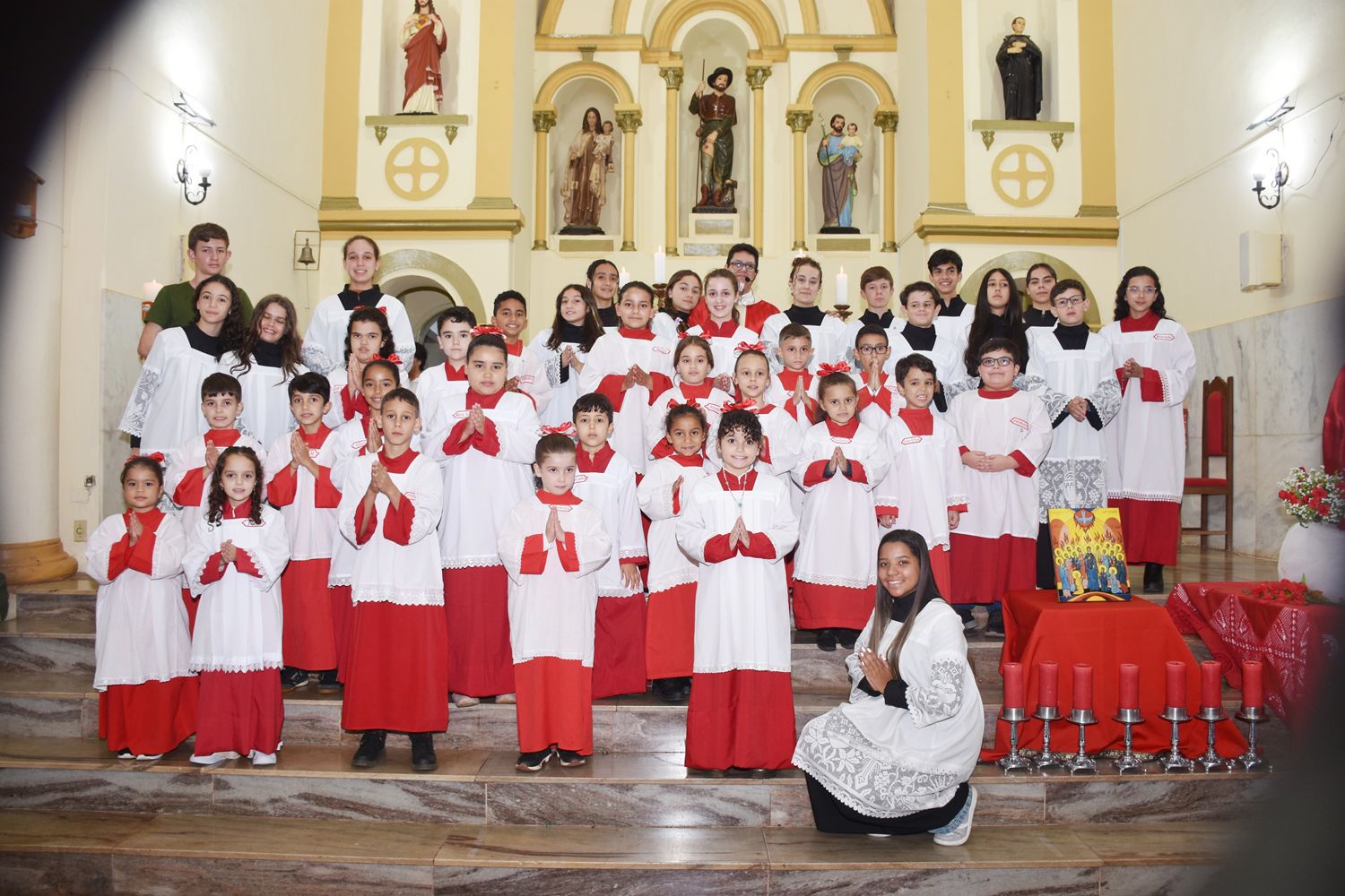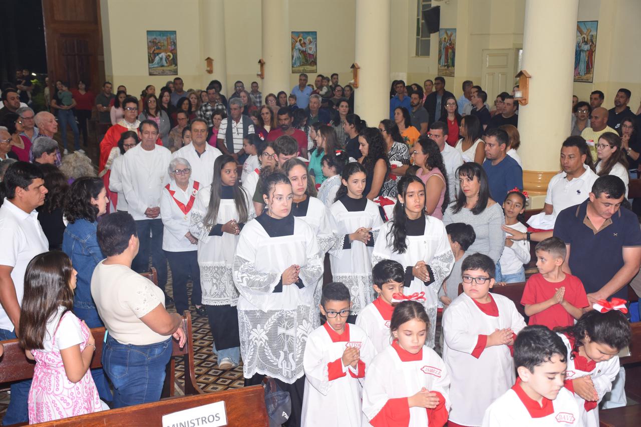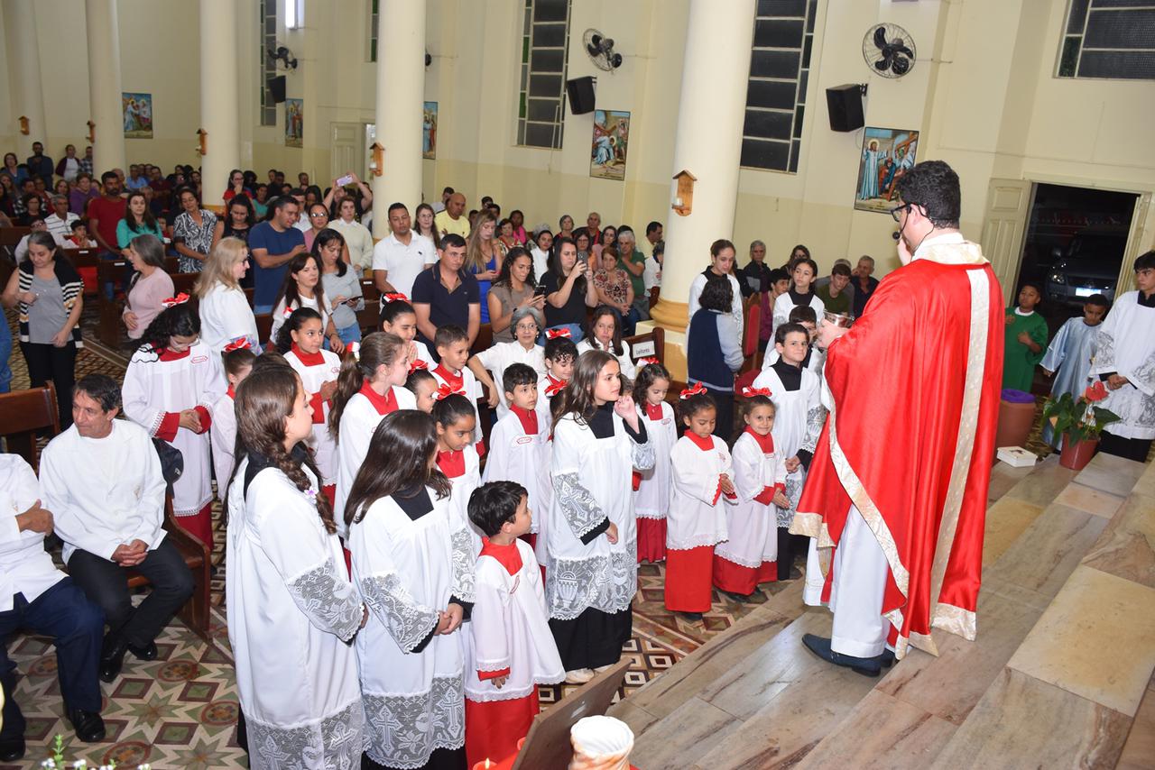 Na ocasião da festa, foram instituídos e apresentados à Comunidade Paroquial os novos acólitos e coroinhas.