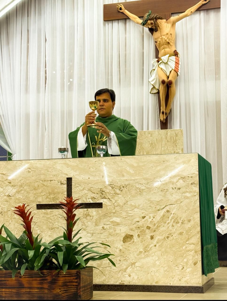 “Ao celebrarmos a Santa Missa, fazemos exatamente o que o Senhor nos mandou: recordamos e atualizamos o seu sacrifício redentor. Não é uma repetição, mas uma presença real do sacrifício único de Cristo no altar. Por isso, a Eucaristia é chamada de Sacrifício Eucarístico, Ceia do Senhor, Fração do Pão, entre outros títulos que expressam a sua riqueza espiritual,” disse padre Marco Túlio.
