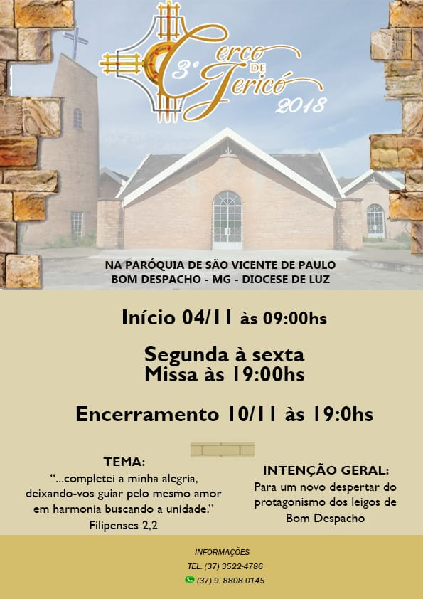 Nos dias 04 a 10 de novembro, a Paróquia São Vicente de Paulo promove o 3º Cerco de Jericó.