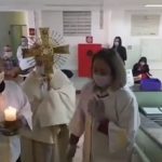 O pároco rezou e pediu o fim da pandemia da Covid 19 no mundo e também pelos enfermos.
