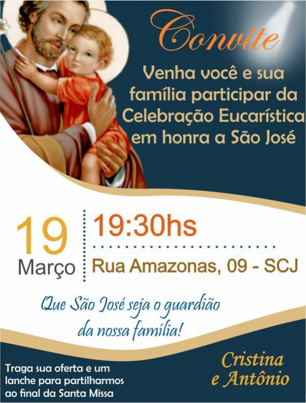 No dia 19 de março, a Igreja comemora o dia de São José, neste dia a Paróquia Sagrado Coração de Jesus, em Formiga irá celebrar missa em Ação de Graças em honra ao santo.