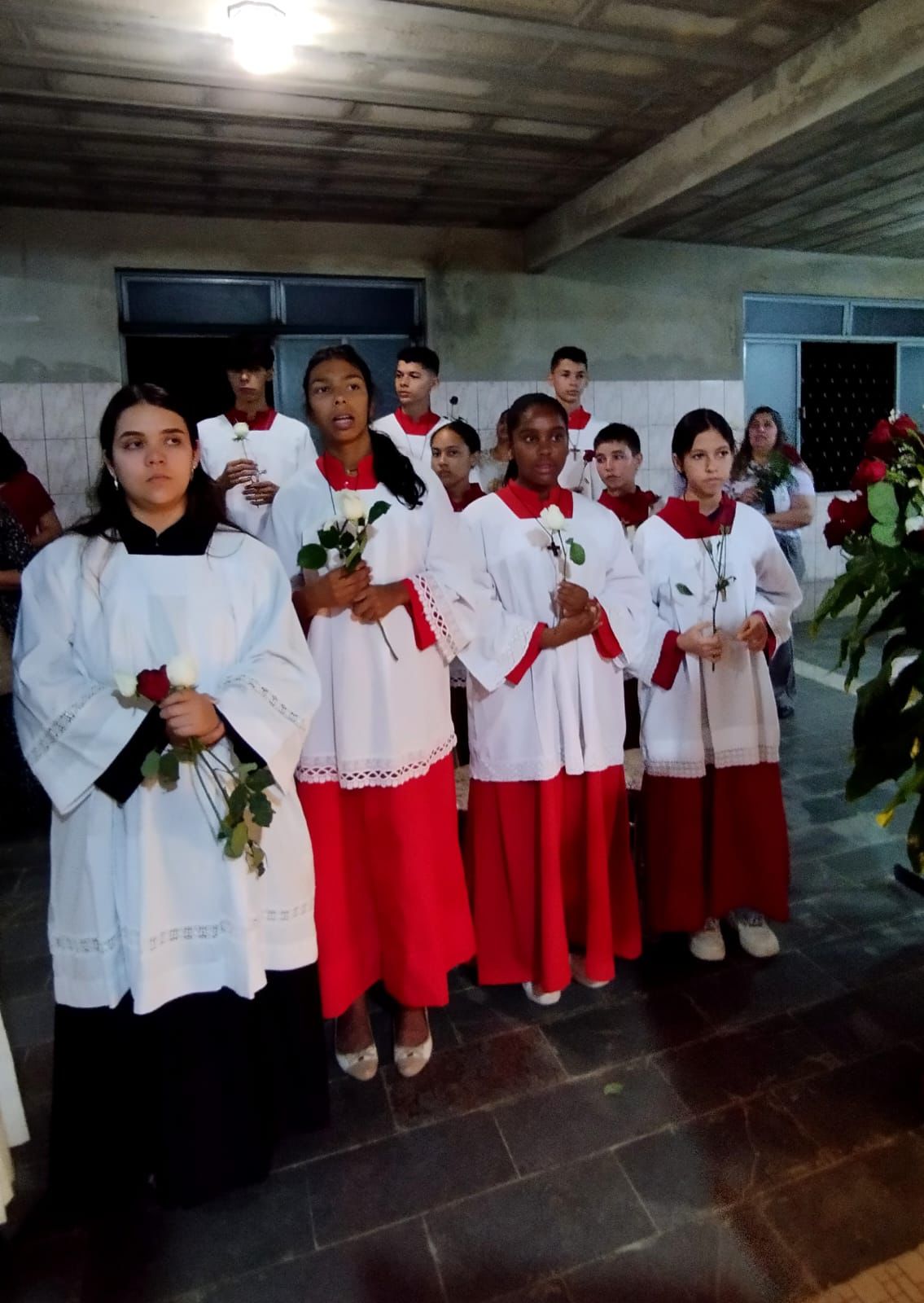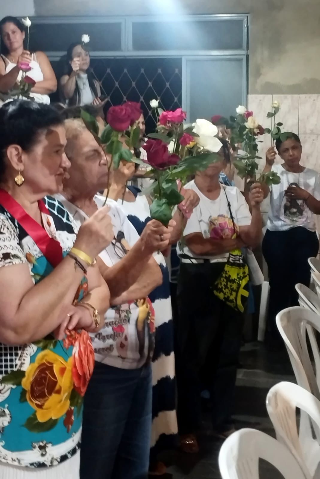 A chuva de rosas, as que adornavam o ambiente e as que foram oferecidas aos devotos, reportou à história de Santa Teresinha, a santa das rosas, deixando a festa ainda mais significativa.