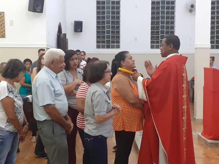 Na Paróquia Nossa Senhora das Graças, na Igreja da Medalha Milagrosa, em Bambuí, o pároco padre Antônio Carlos Ferreira Couto fez o momento da benção com a assembleia que estava lotada.
