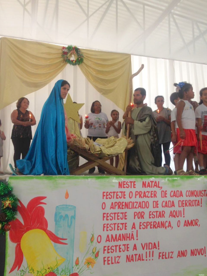 Houve também a mensagem de Natal, por meio de um teatro representando o nascimento do Menino Jesus.