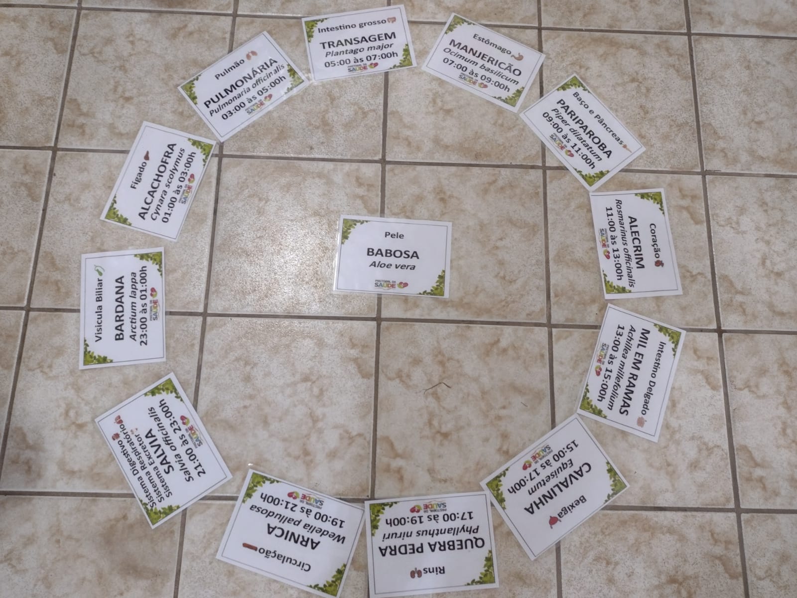 O momento de saúde contou ainda com a apresentação do Relógio Biológico do corpo humano e uma leitura espiritual de meditação, feitas pela Fernanda, assistente social do serviço de saúde mental.