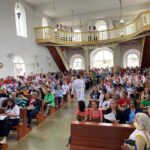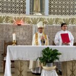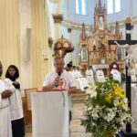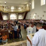 Com a entrada dos fiéis na Catedral Diocesana, os ministros ordenados aspergiram todos com a água batismal, recordando a filiação divina e o compromisso missionário de cada peregrino. Em seguida, seguiu-se a Santa Missa com a Liturgia da Palavra e a Liturgia Eucarística.