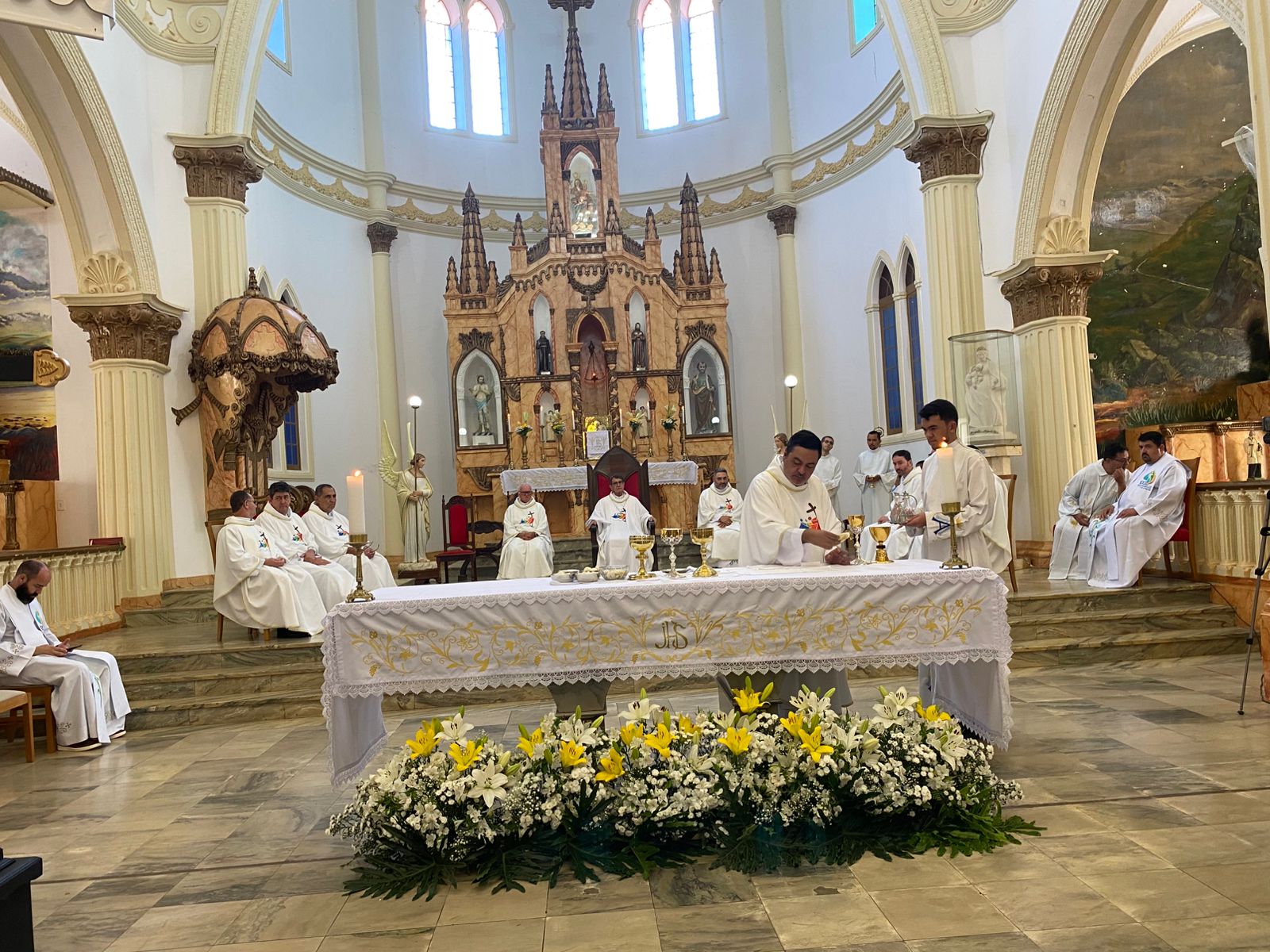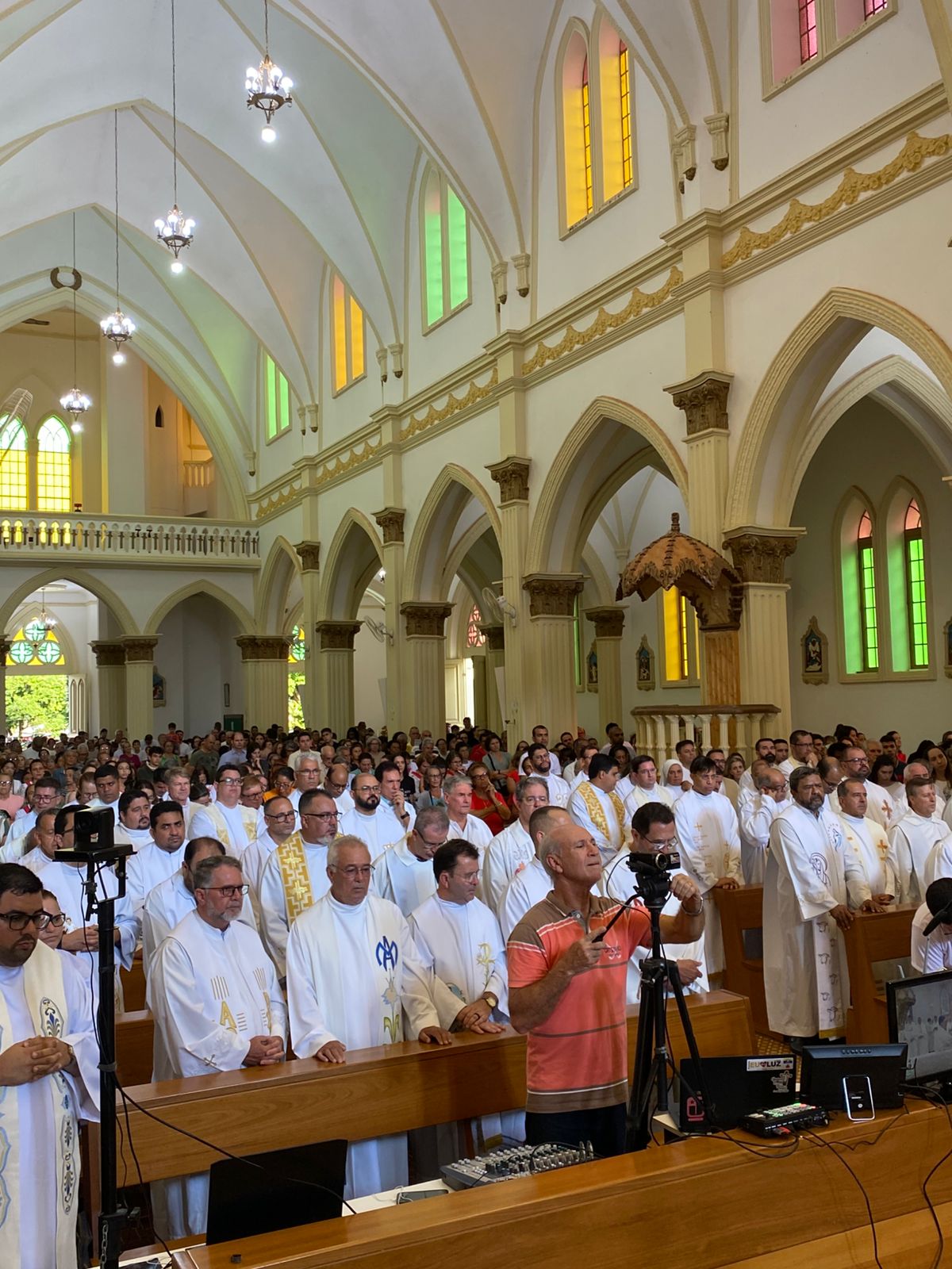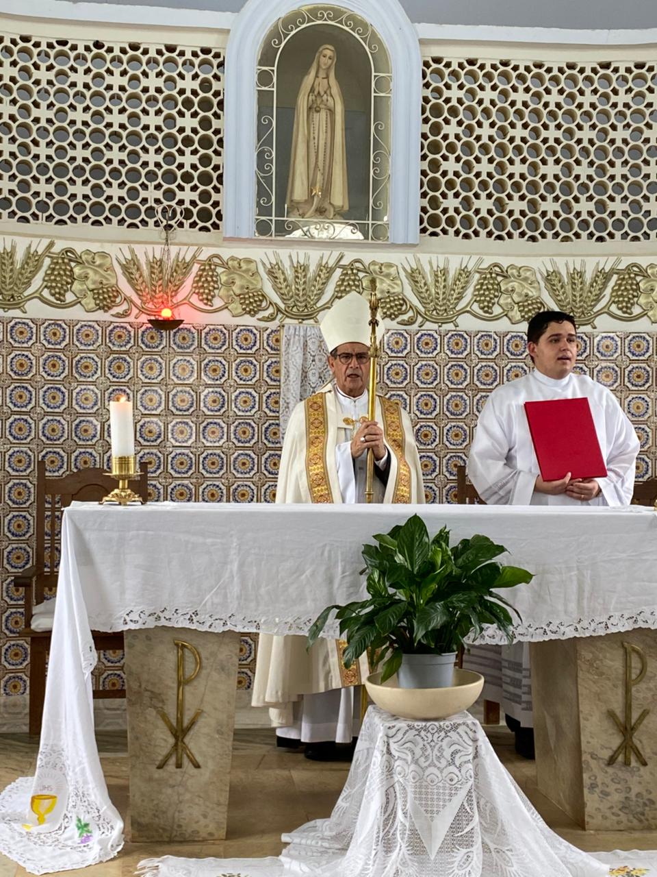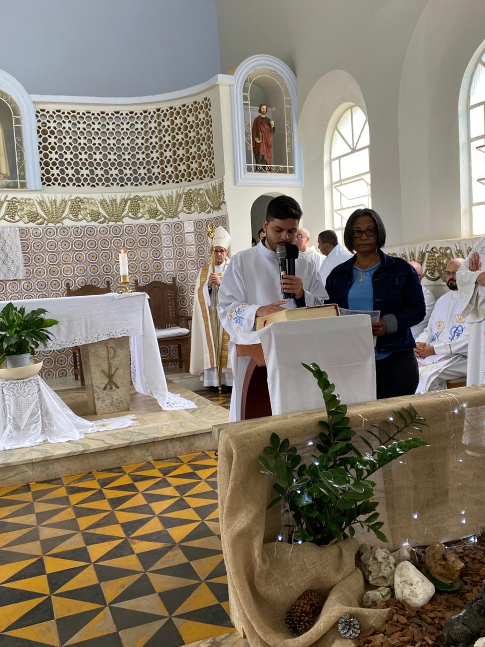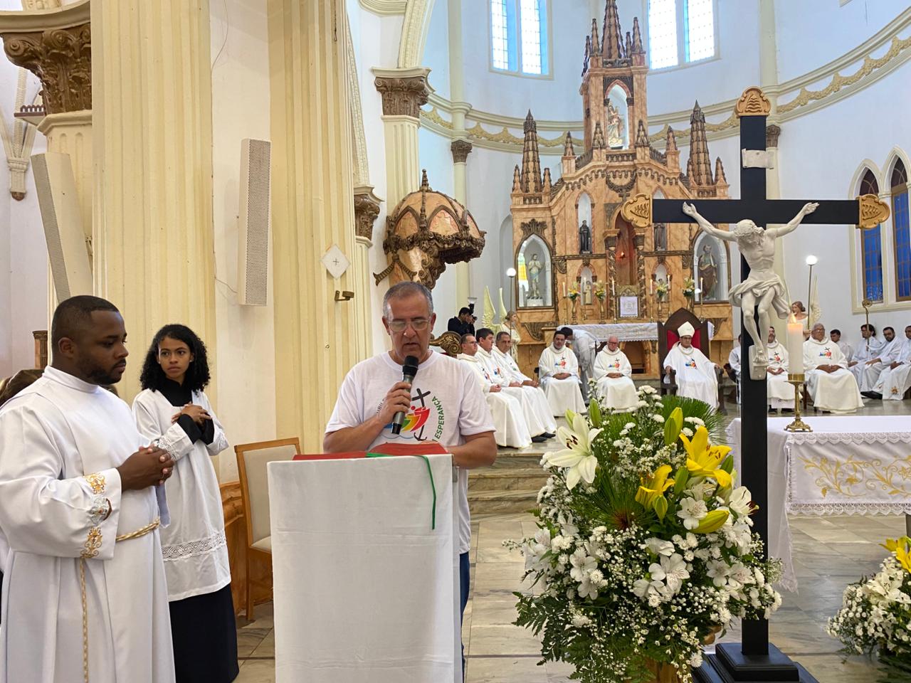 Com a entrada dos fiéis na Catedral Diocesana, os ministros ordenados aspergiram todos com a água batismal, recordando a filiação divina e o compromisso missionário de cada peregrino. Em seguida, seguiu-se a Santa Missa com a Liturgia da Palavra e a Liturgia Eucarística.