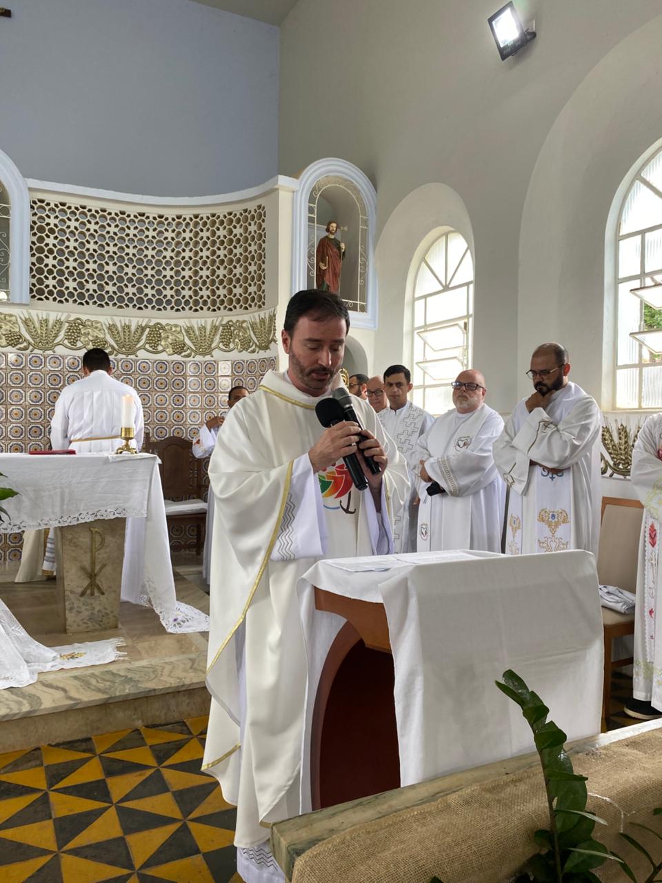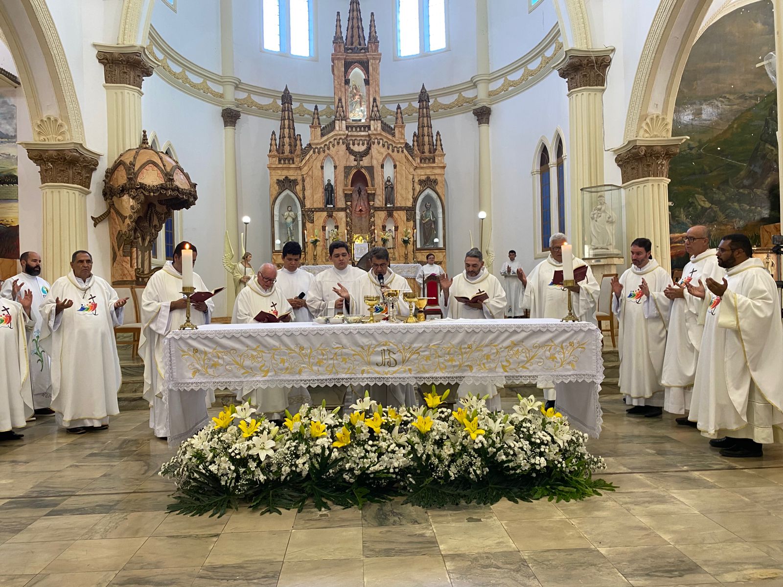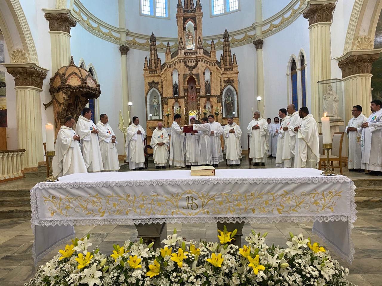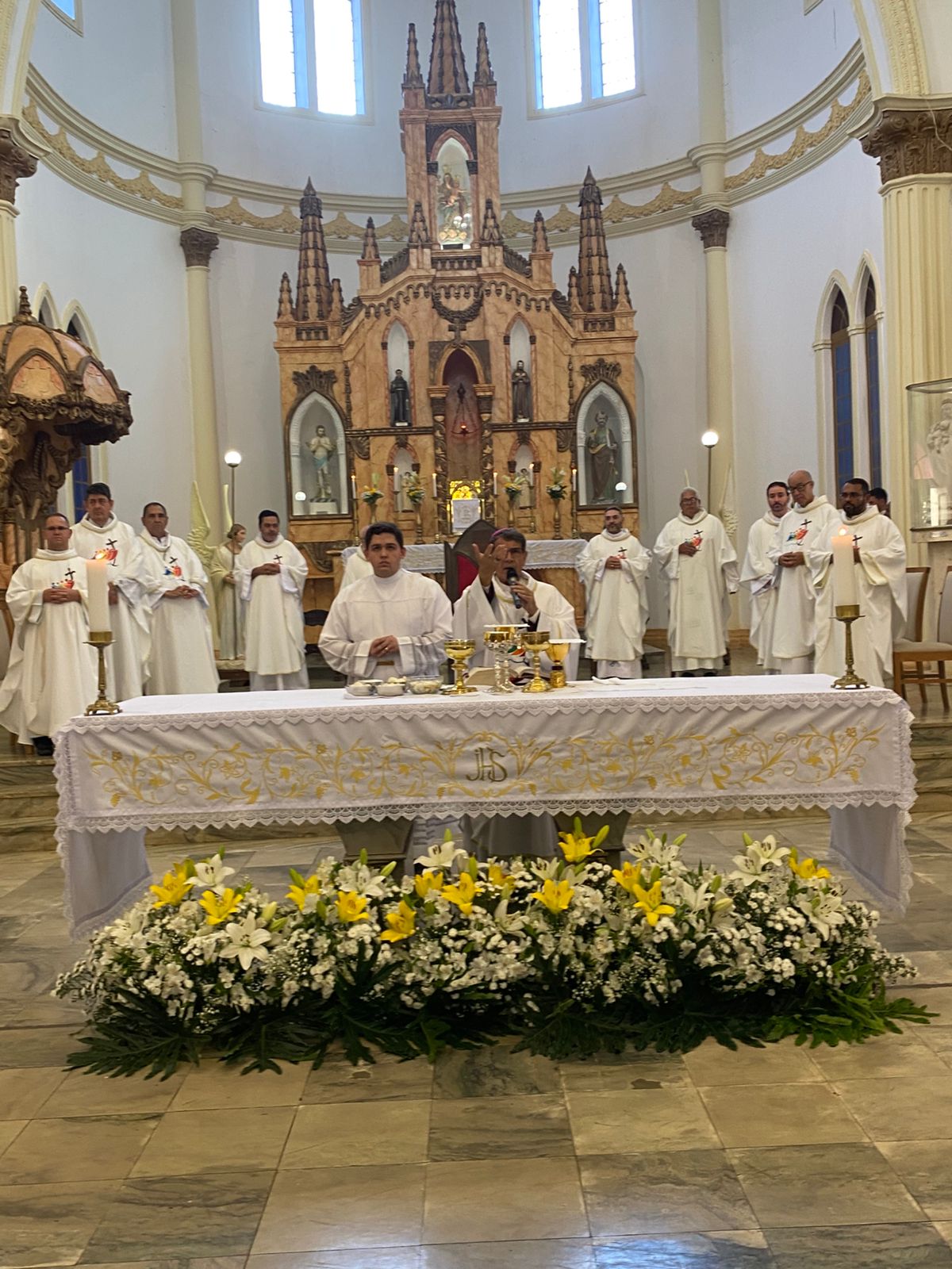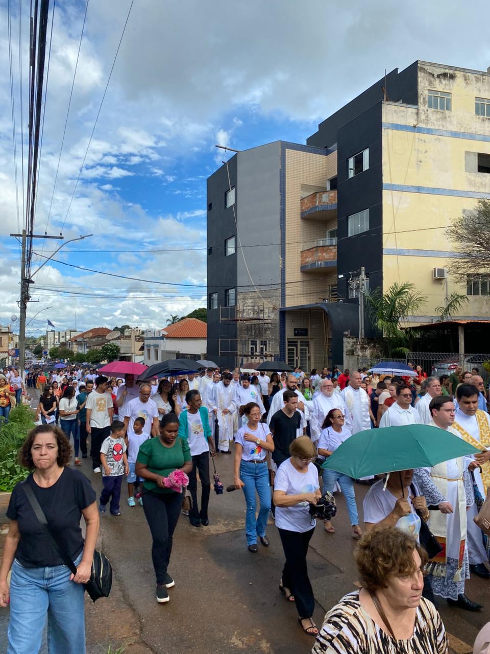 Com a entrada dos fiéis na Catedral Diocesana, os ministros ordenados aspergiram todos com a água batismal, recordando a filiação divina e o compromisso missionário de cada peregrino. Em seguida, seguiu-se a Santa Missa com a Liturgia da Palavra e a Liturgia Eucarística.