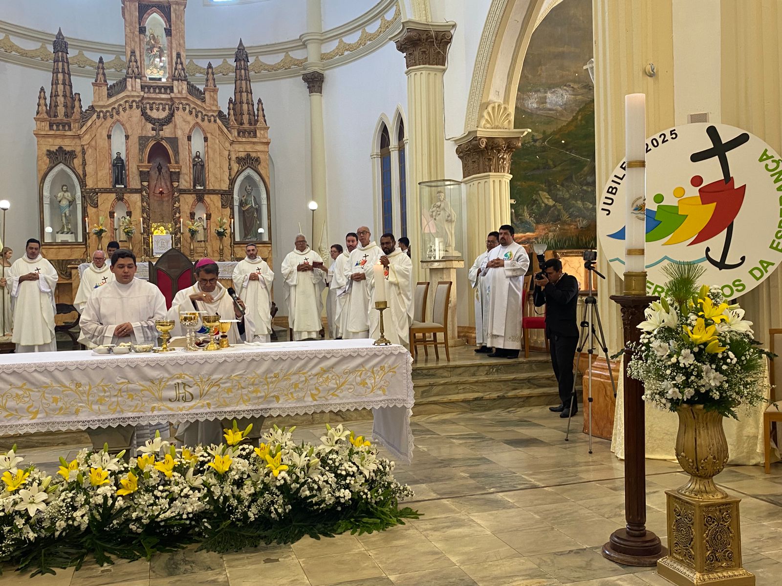 Na sua homilia, Dom José Aristeu orientou à Família Diocesana que o Jubileu da Esperança nos provoca a fazer dois movimentos importantes. “O primeiro movimento é para dentro de si mesmo, para que tenhamos nossa esperança e ânimo revigorados, implorando a graça da misericórdia em nosso coração. O segundo movimento é para fora, no ambiente comunitário, para que sendo peregrinos de esperança alcancemos aqueles que estão desolados, solitários e na margem da caminhada”. Reforça Dom Aristeu.
