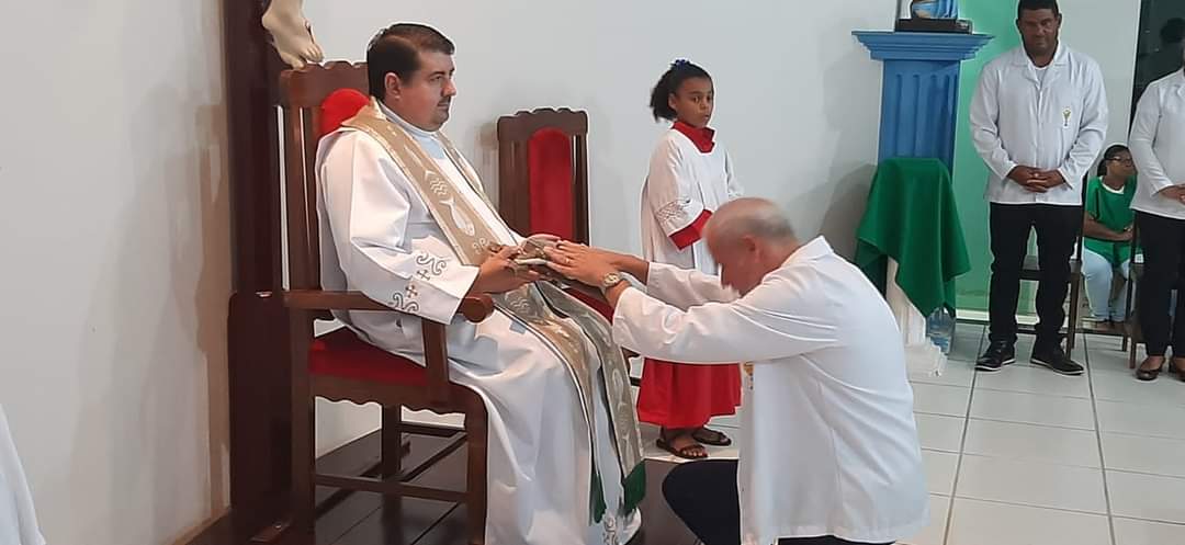 Padre Fabrício teve muita sensibilidade ao fazer o convite para Ângelo. Após uma semana de curso preparatório, no dia 27 de janeiro de 2024, na Igreja Nossa Senhora da Paz, ocorreu a Instituição de novos Ministros da Palavra, entre eles, Ângelo Macedo.