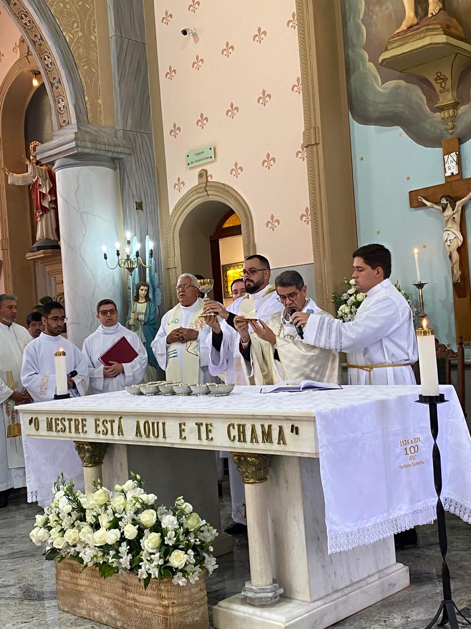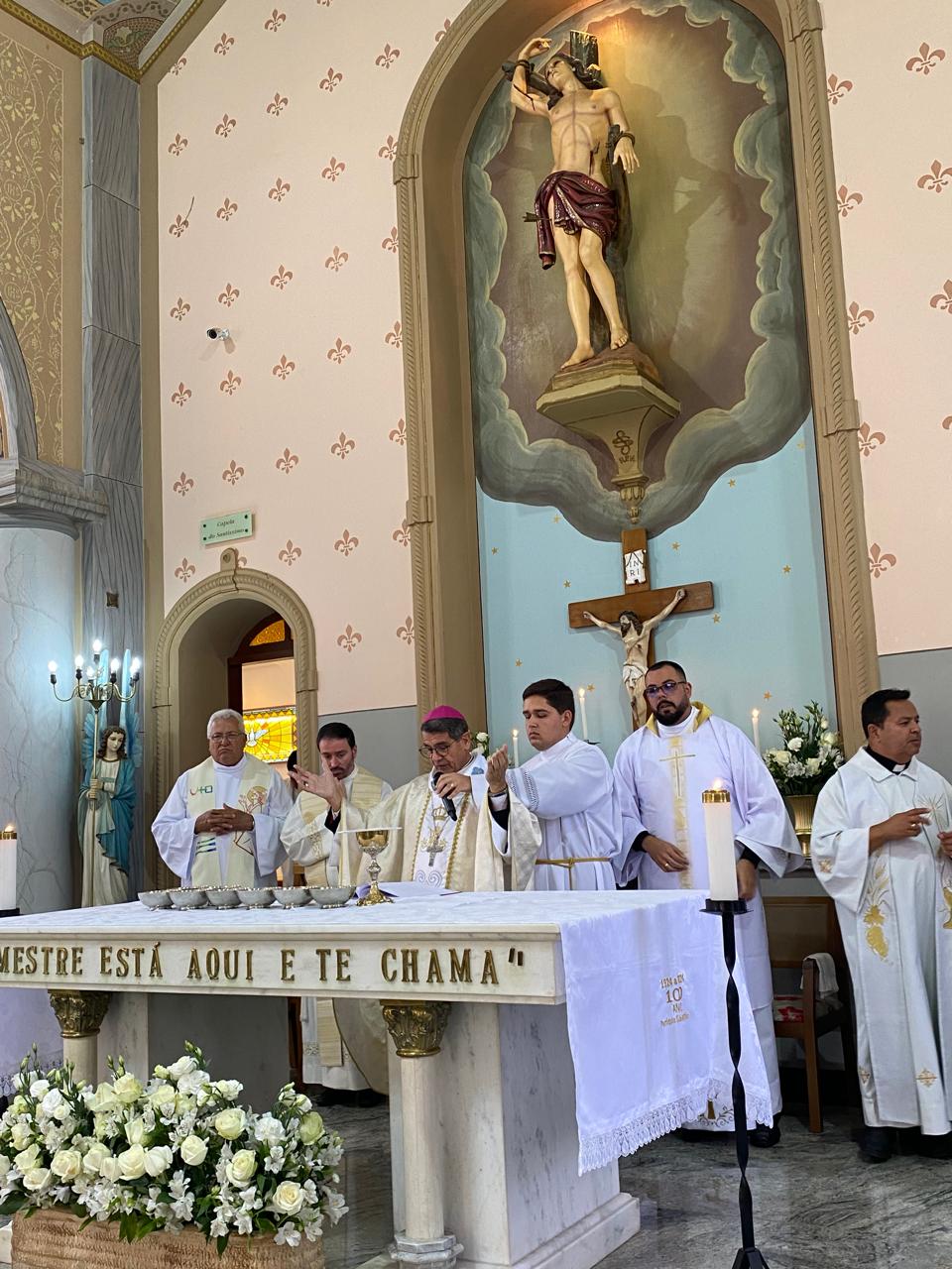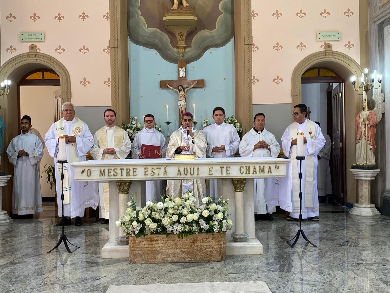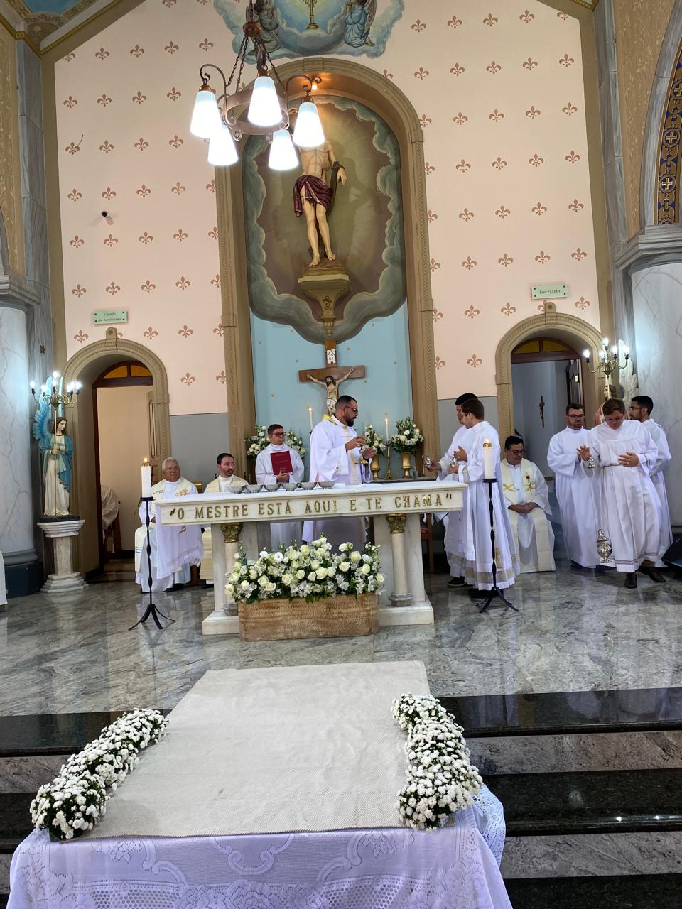 A solene Eucaristia foi realizada na Igreja Matriz São Sebastião, às 09h30, sob a presidência do bispo diocesano, Dom José Aristeu Vieira e a presença de dezenas de sacerdotes e seminaristas.