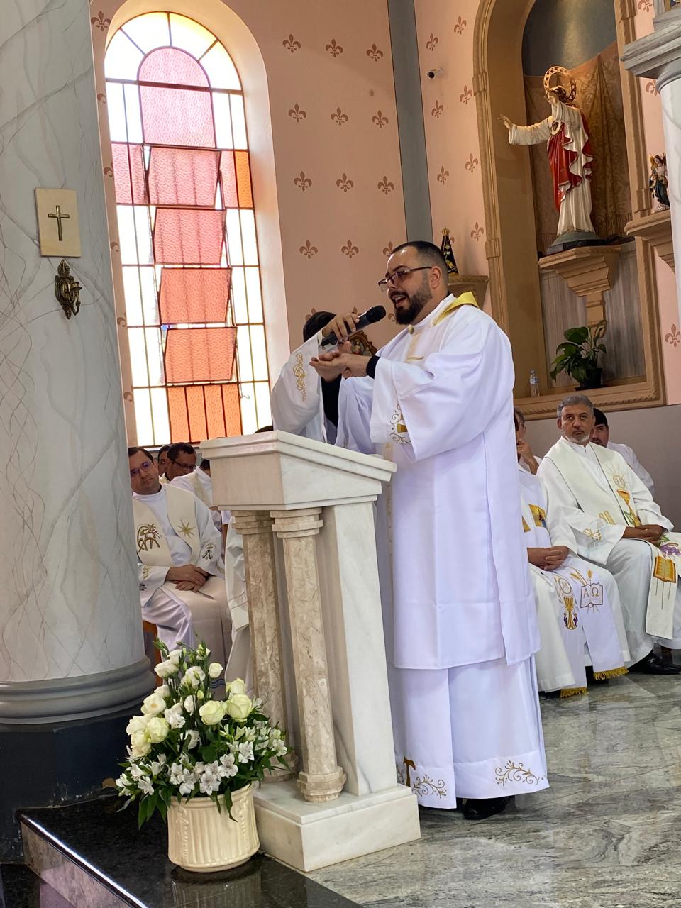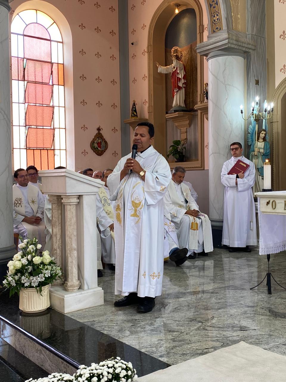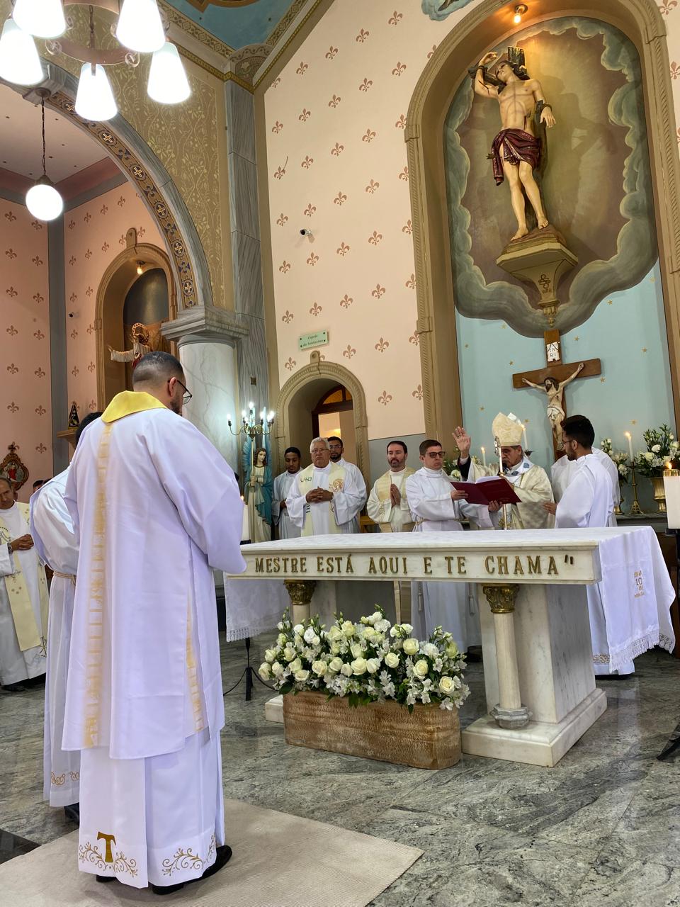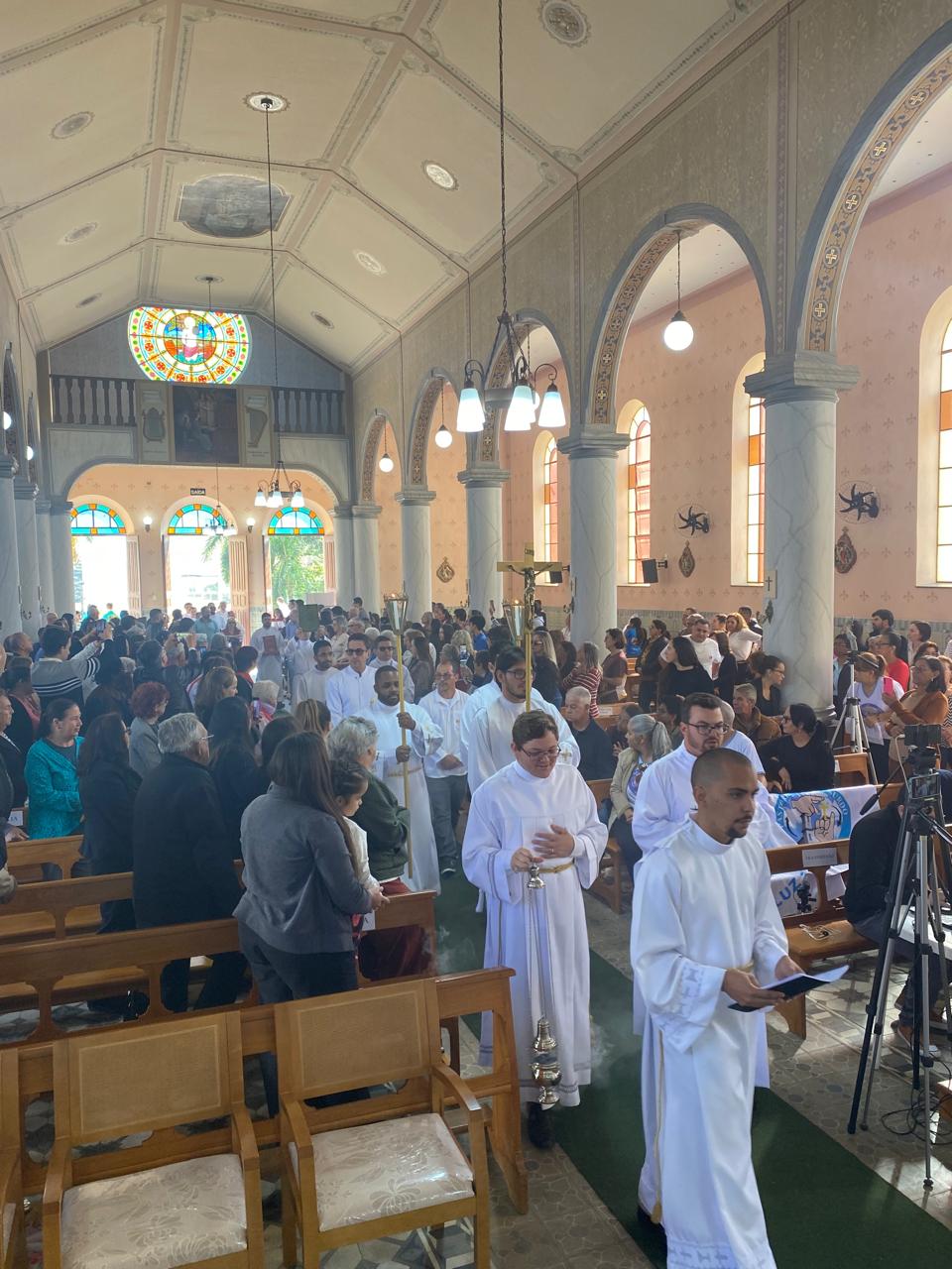 A solene Eucaristia foi realizada na Igreja Matriz São Sebastião, às 09h30, sob a presidência do bispo diocesano, Dom José Aristeu Vieira e a presença de dezenas de sacerdotes e seminaristas.