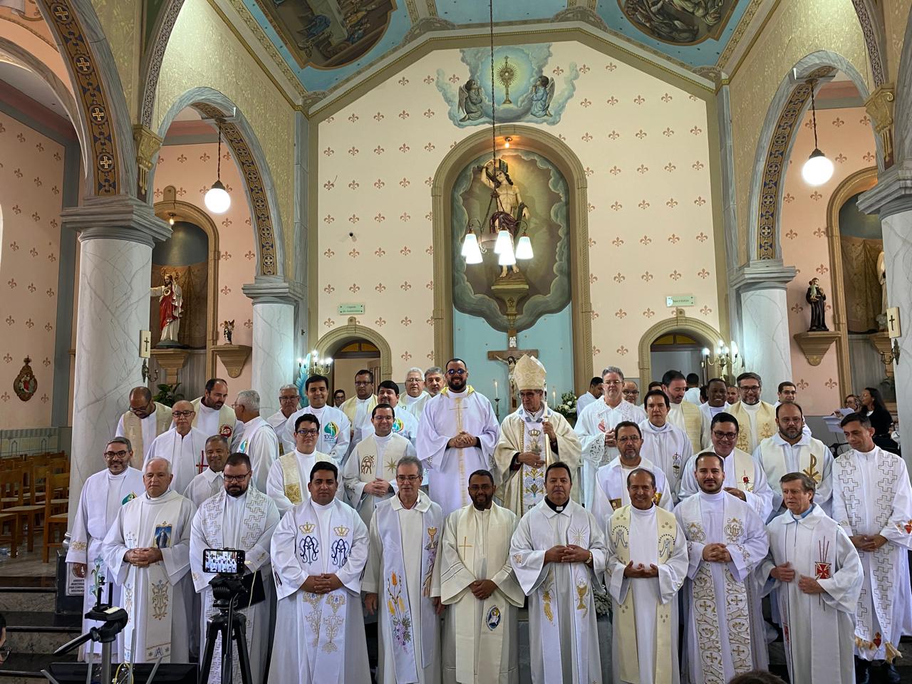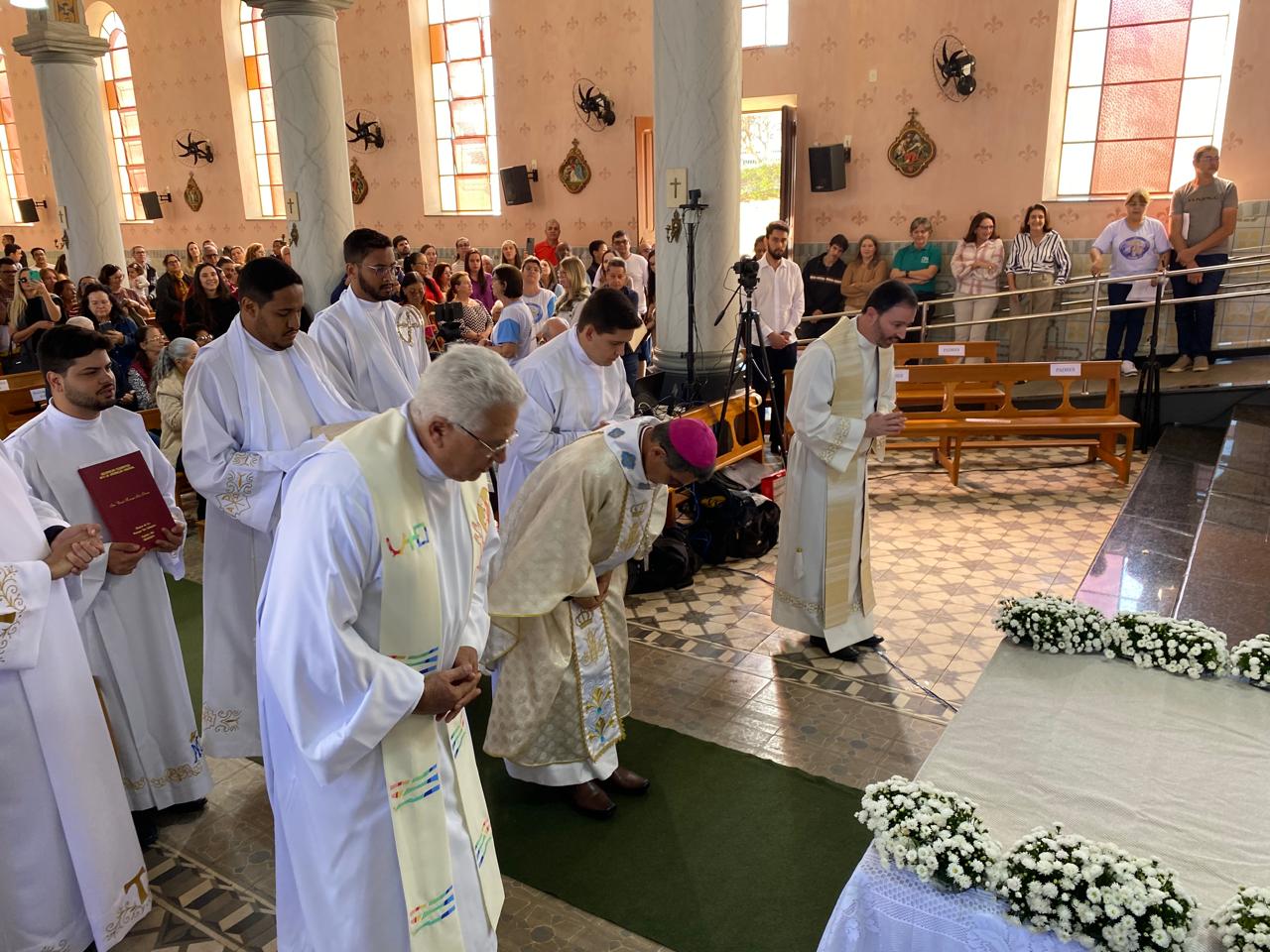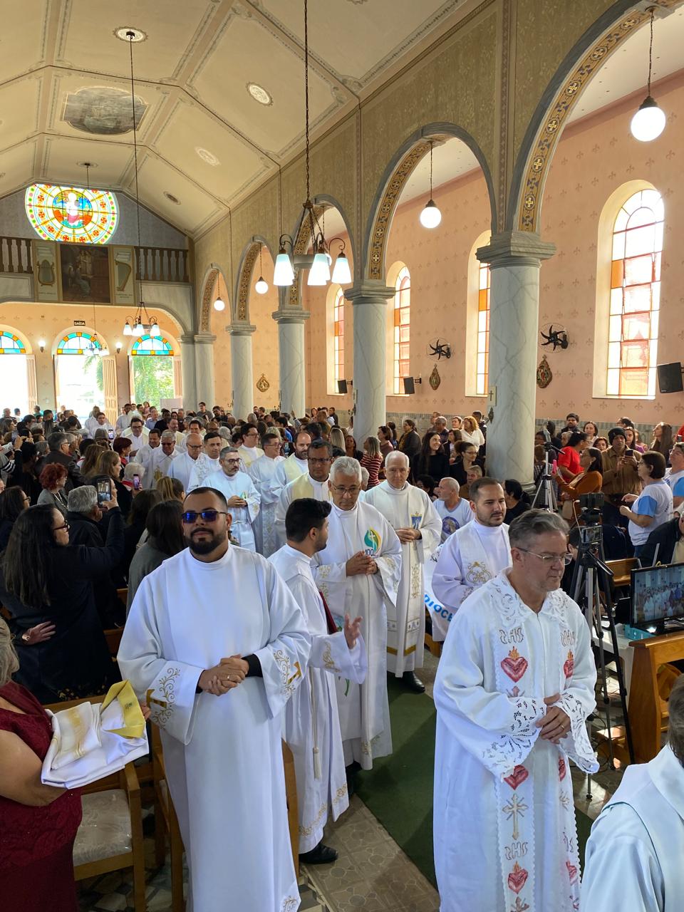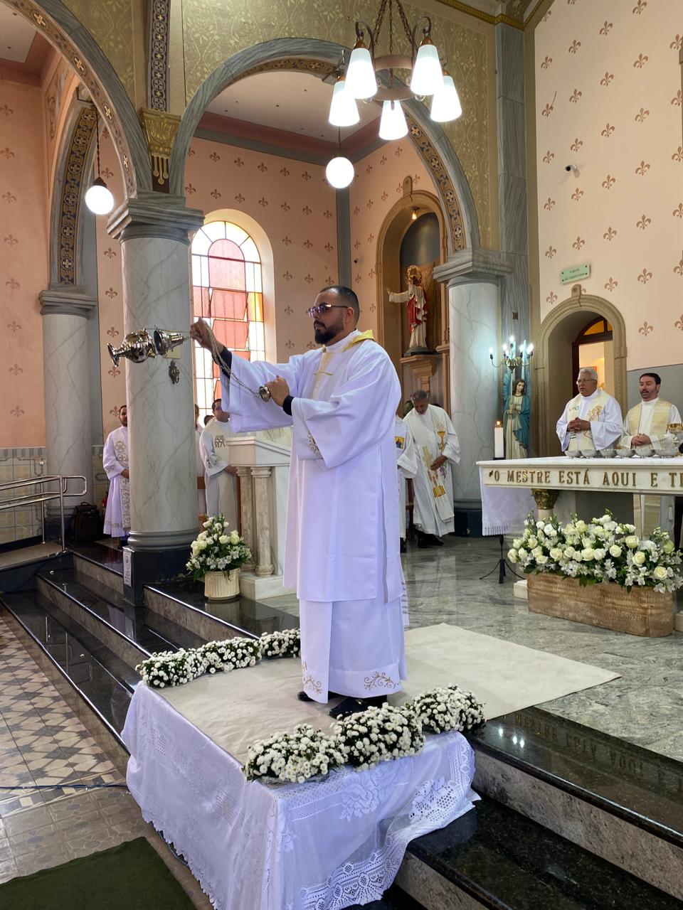 A solene Eucaristia foi realizada na Igreja Matriz São Sebastião, às 09h30, sob a presidência do bispo diocesano, Dom José Aristeu Vieira e a presença de dezenas de sacerdotes e seminaristas.