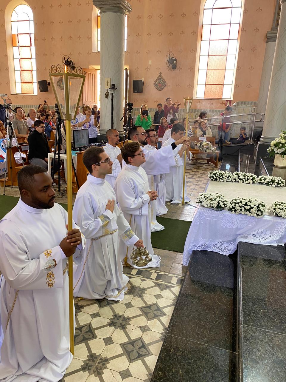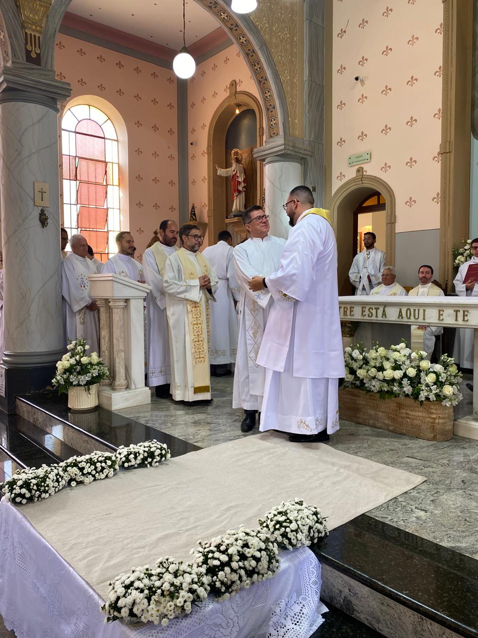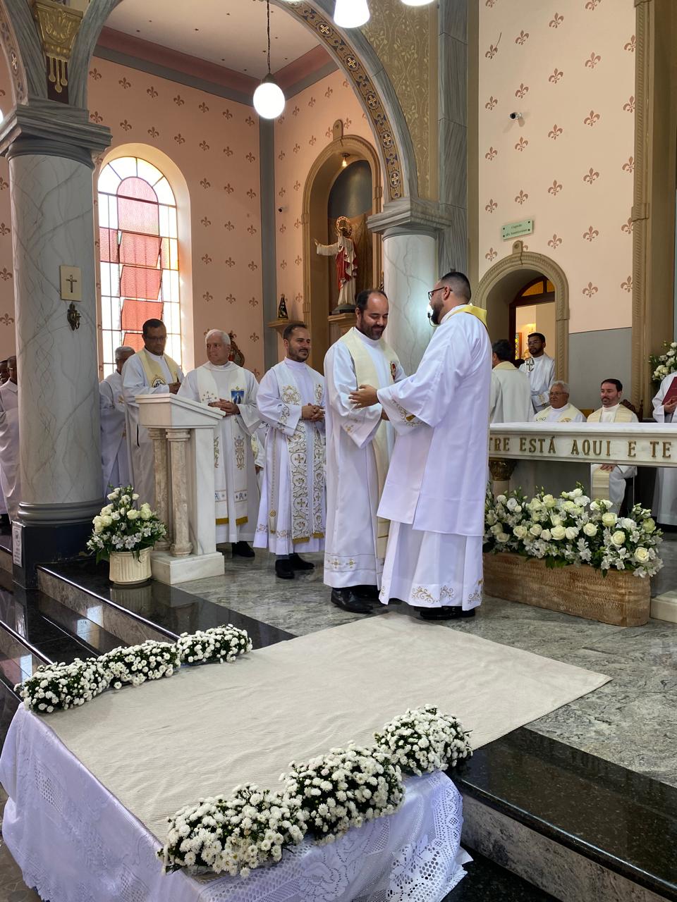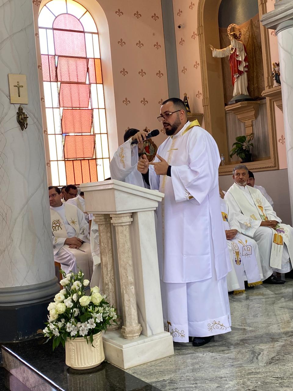 A solene Eucaristia foi realizada na Igreja Matriz São Sebastião, às 09h30, sob a presidência do bispo diocesano, Dom José Aristeu Vieira e a presença de dezenas de sacerdotes e seminaristas.