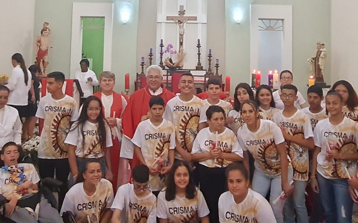 Os fiéis da Comunidade Nossa Senhora do Carmo, em Serra da Saudade, reuniram-se no dia 18 de dezembro para celebrarem o Crisma de 23 jovens.