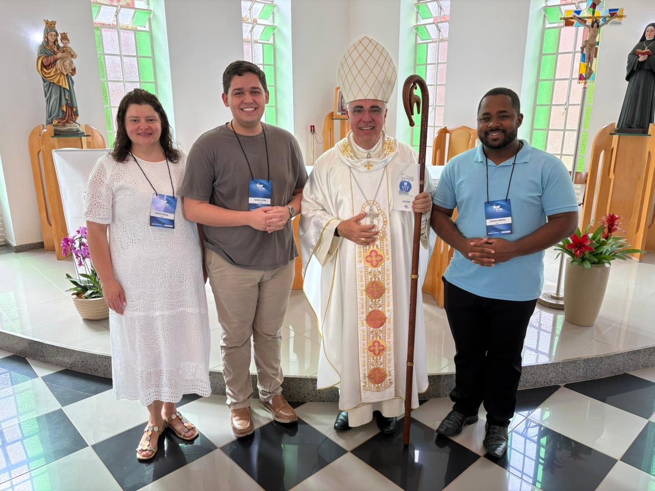 Os seminaristas Daniel Ribeiro e Carlos Vinícius, e a leiga consagrada na Ordo Virgo Dalila Vilela, atuante na Paróquia Nossa Senhora do Livramento, representaram a Diocese de Luz na 46º Assembleia do Serviço de Animação Vocacional.