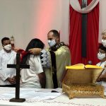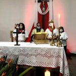 Durante a homilia padre João Paulo Mesquita relembrou e explicou as 12 promessas do Sagrado Coração de Jesus, destacando a importância da entronização da imagem do Sagrado Coração de Jesus nas casas de todas as famílias, porque ele transmite a paz.