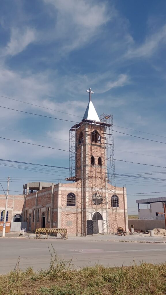 Trabalhadores da construção civil elevaram, no dia 25 de junho, a cruz da torre da Igreja Matriz Nossa Senhora de Guadalupe, em Lagoa da Prata.